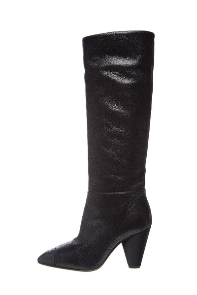 Chanel Black Glitter Knee High Heel Boots SZ 37