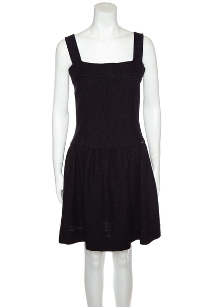 Chanel 2024/25 Black Glitter Tweed Mini Dress SZ 36