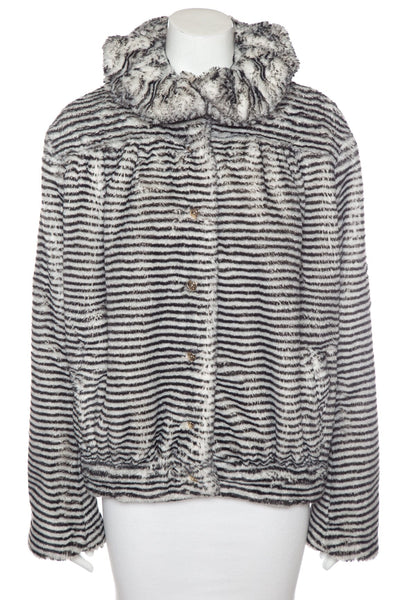 Chanel Black and White Tiger Print Faux Fur Jacket SZ 40