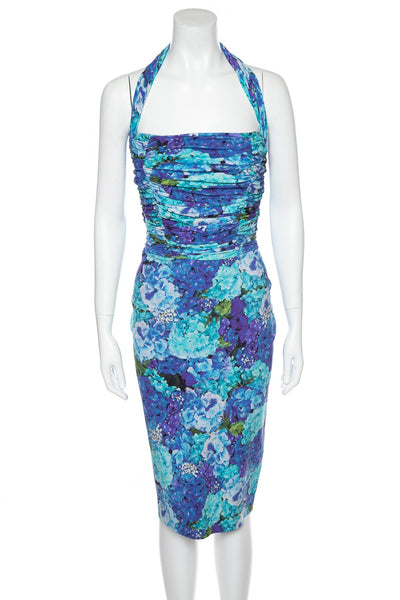 Chiara Boni Blue Floral Fitted Dress SZ 46