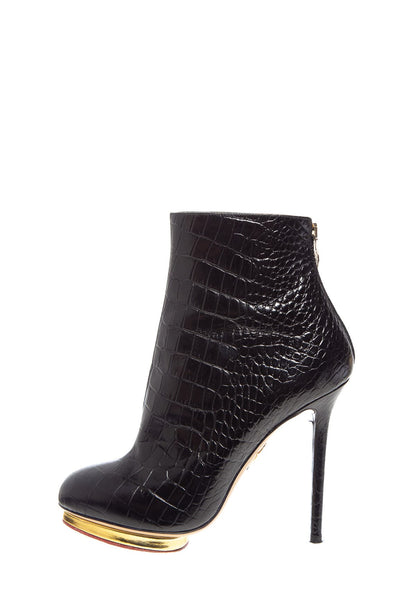 Charlotte Olympia Black Croc Embossed Heel Boots SZ 37.5