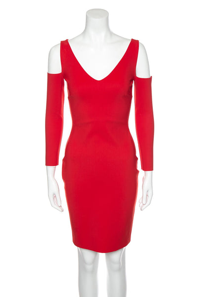 Chiara Boni Red Fitted Long Sleeve Cold Shoulder Dress SZ 40
