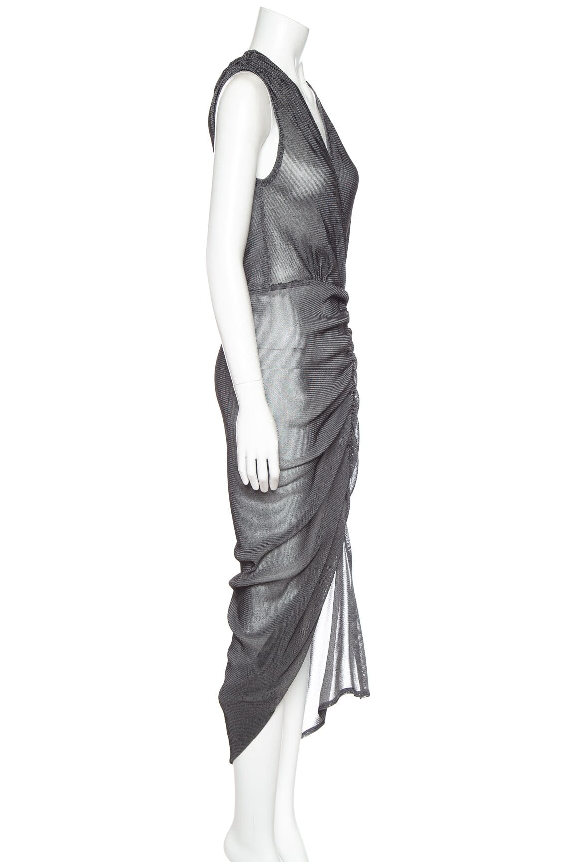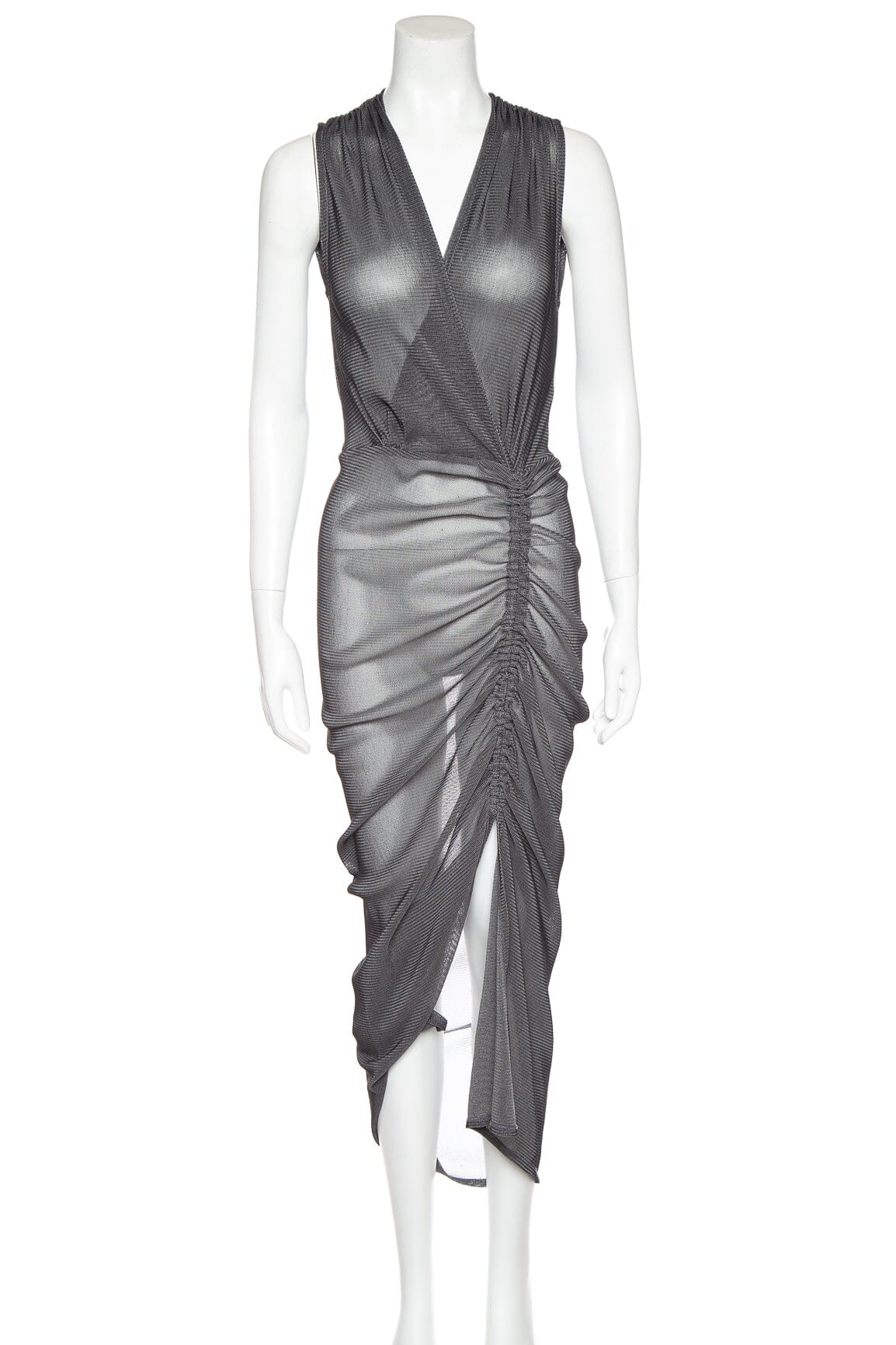 Acler Grey Sheer Ruched Midi Dress w/Slit. THis item is in very good condition.