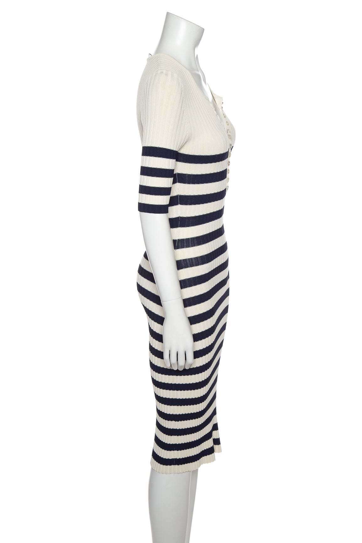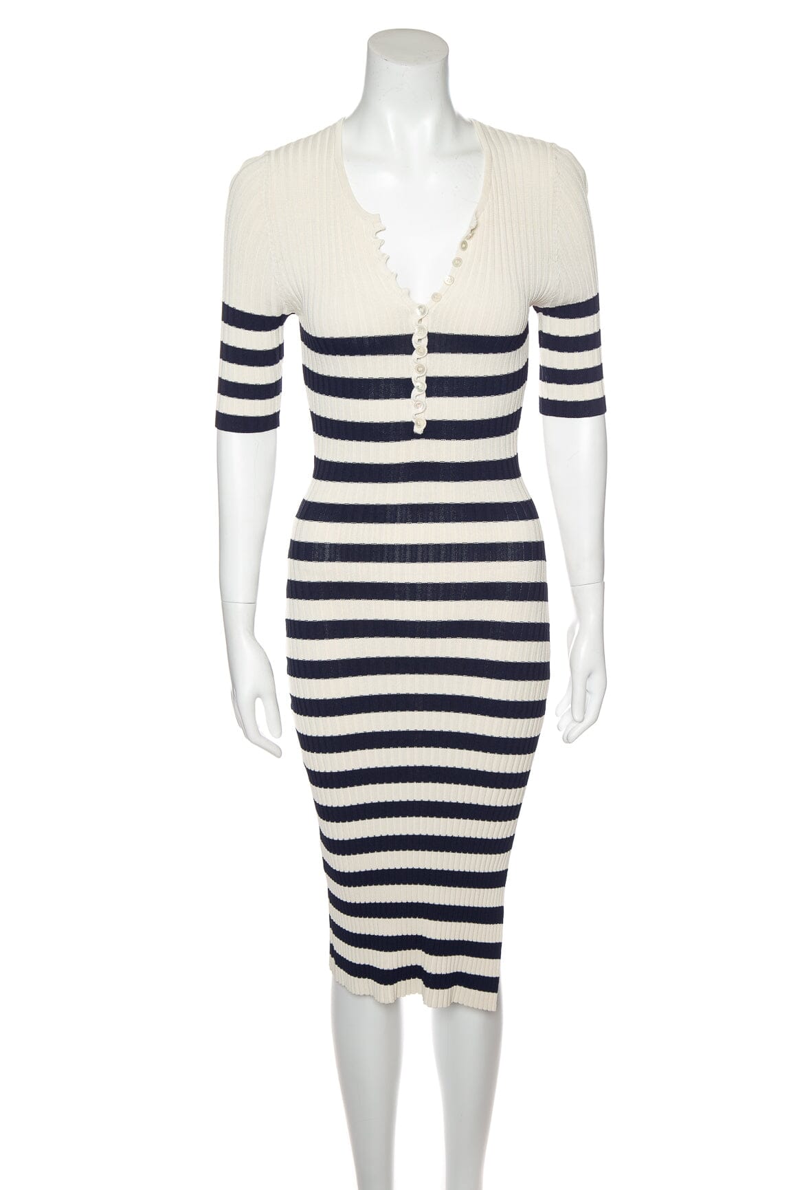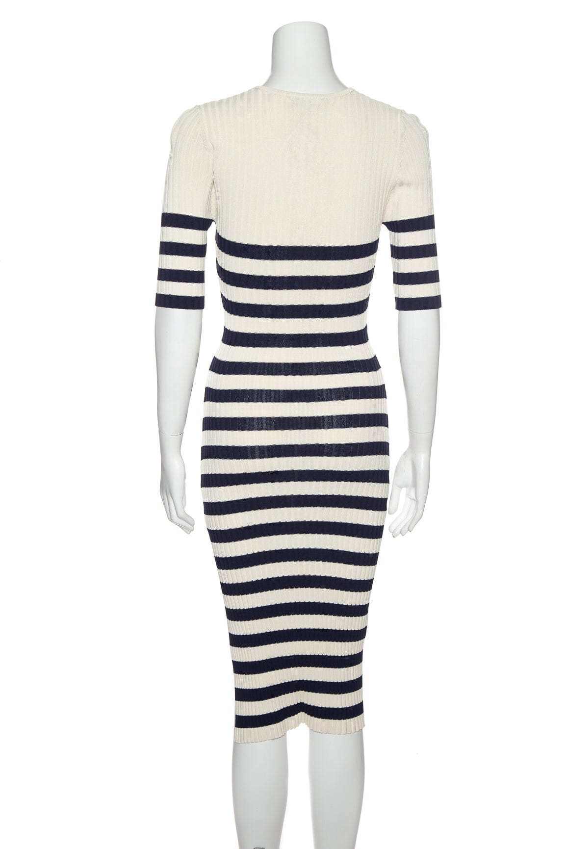 Altuzarra Cream/Navy Stripe Maxi Ribbed Knit Short Sleeve Dress. This item is in very good condition.