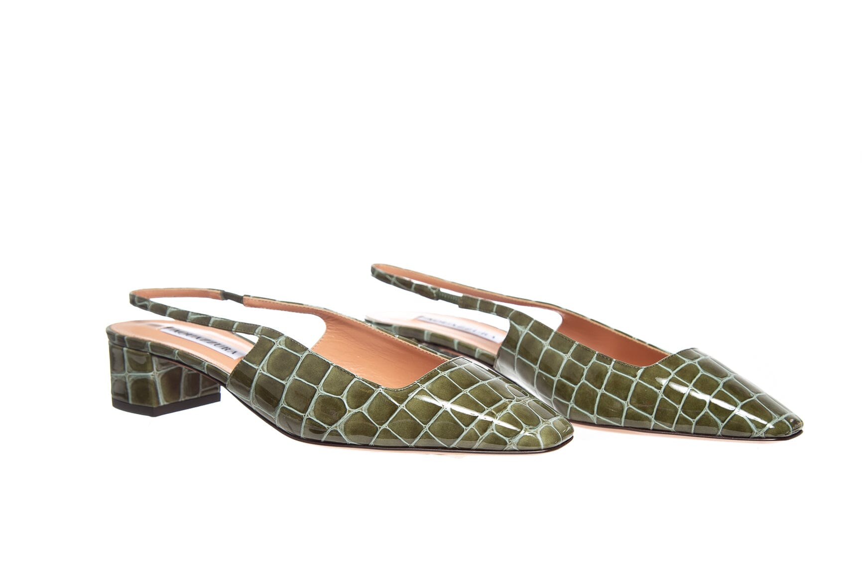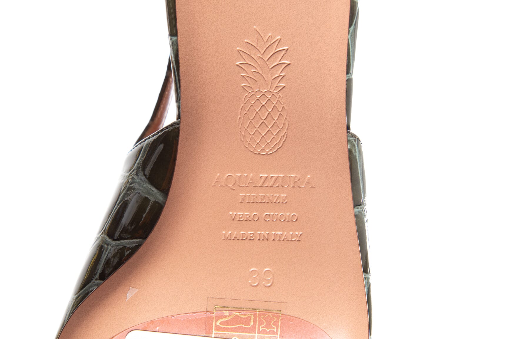Aquazzura Green Patent Croc Embossed Slingback Mules SZ 39