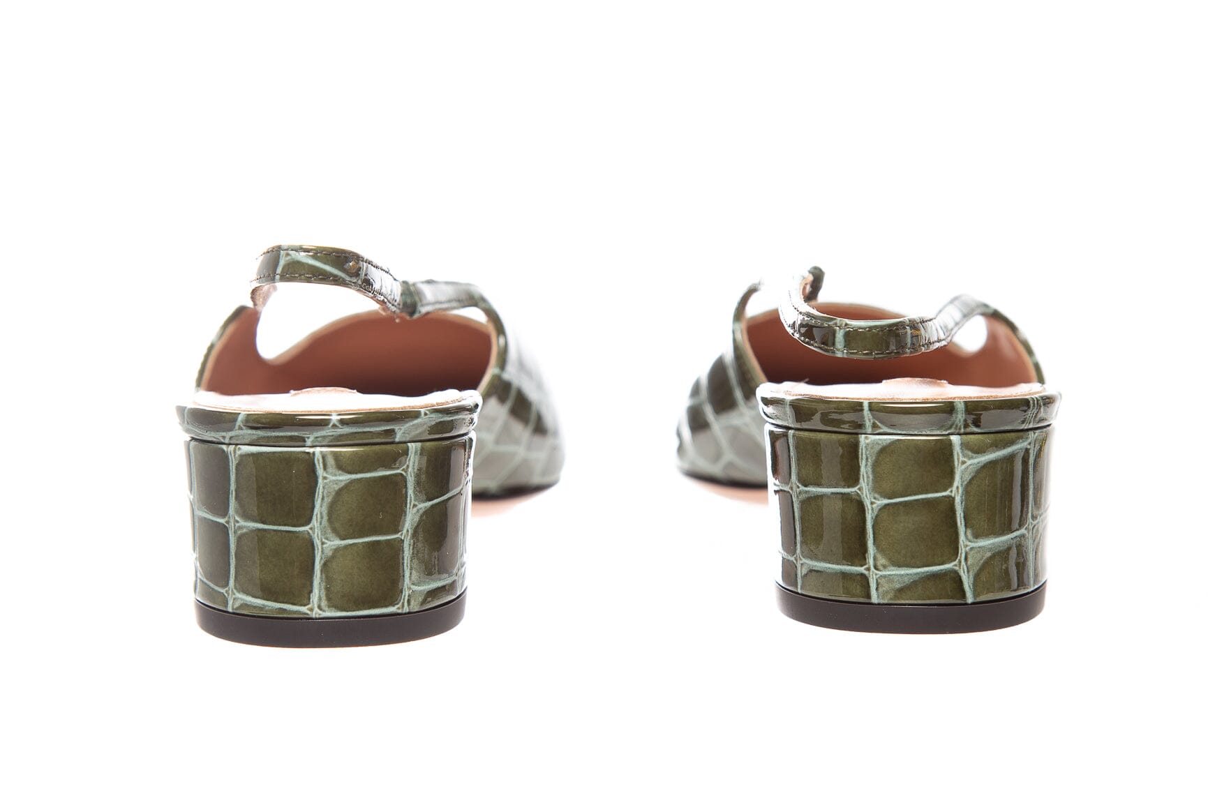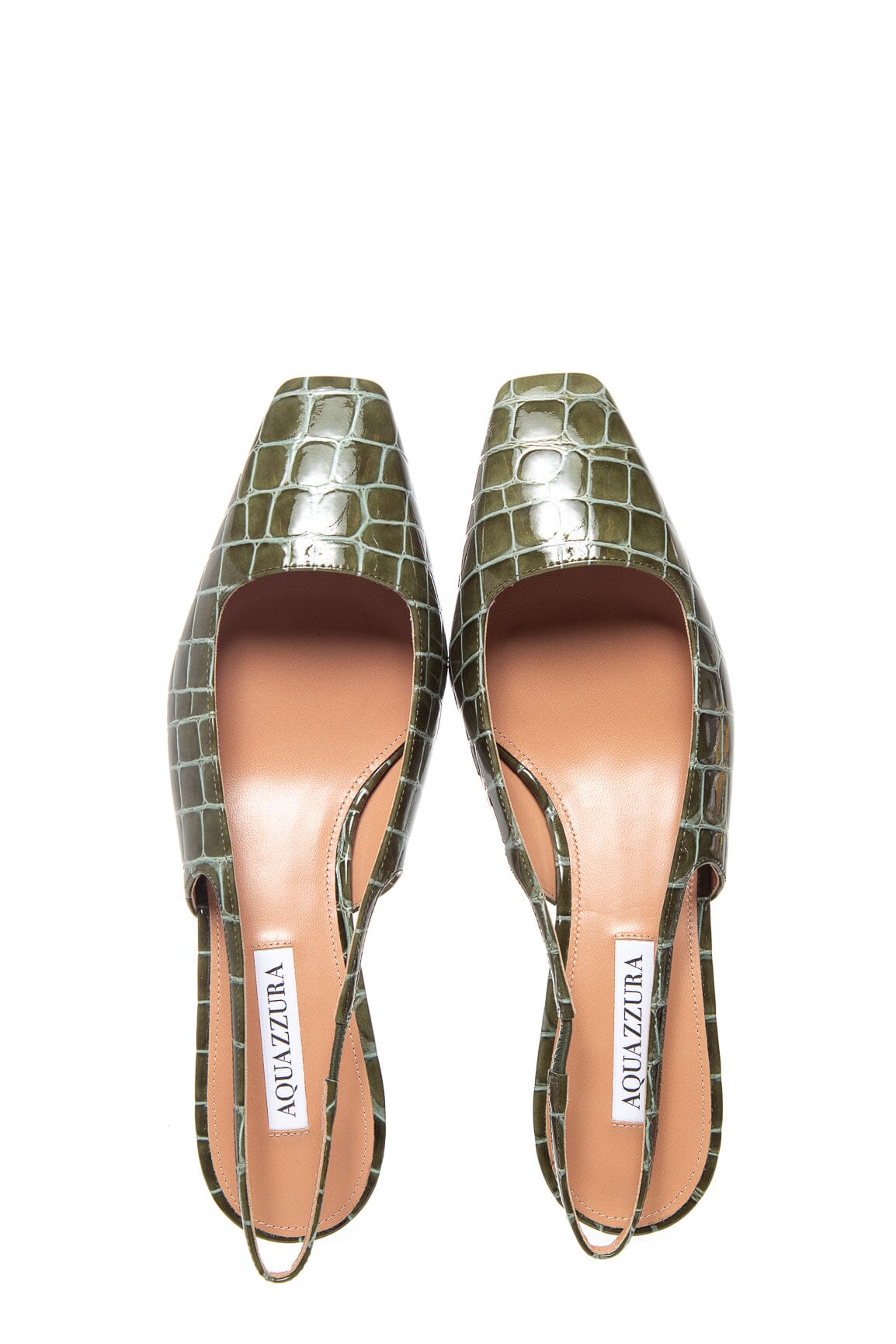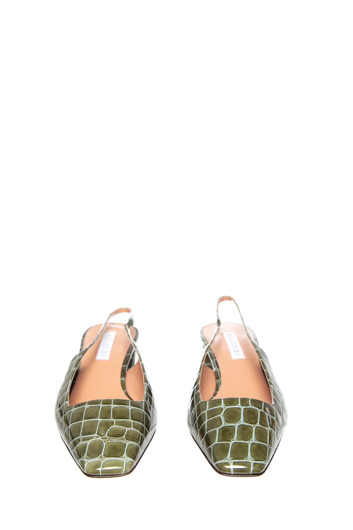 Aquazzura Green Patent Croc Embossed Slingback Mules. This item has never been worn.