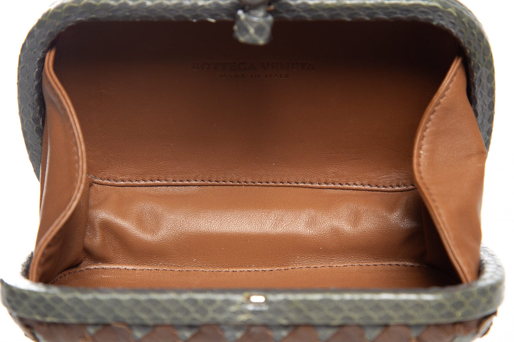 Bottega Veneta Brown and Blue Python Skin Knot Clutch