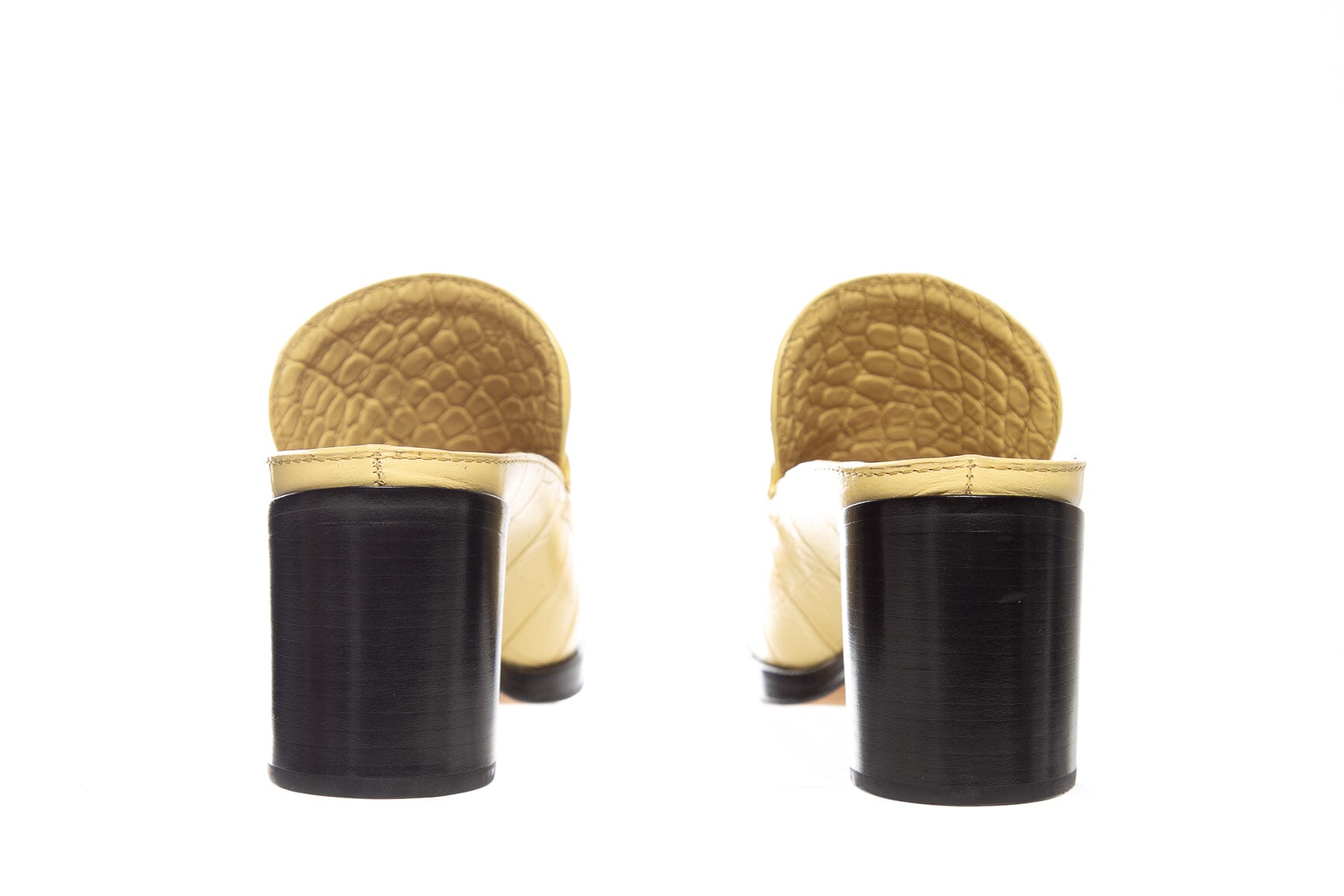 Bottega Veneta Leather Yellow Croc Embossed Mules SZ 36.5