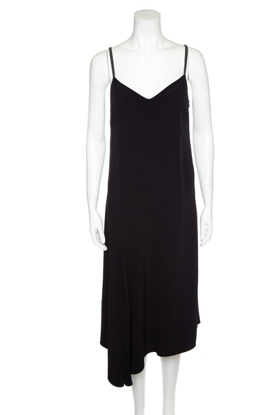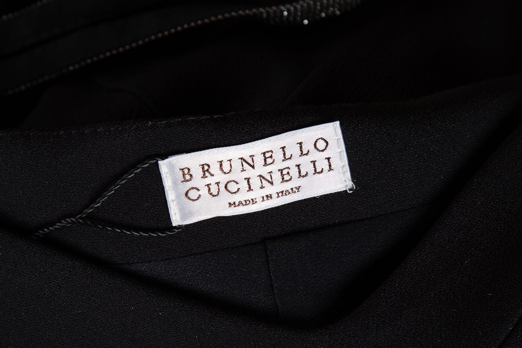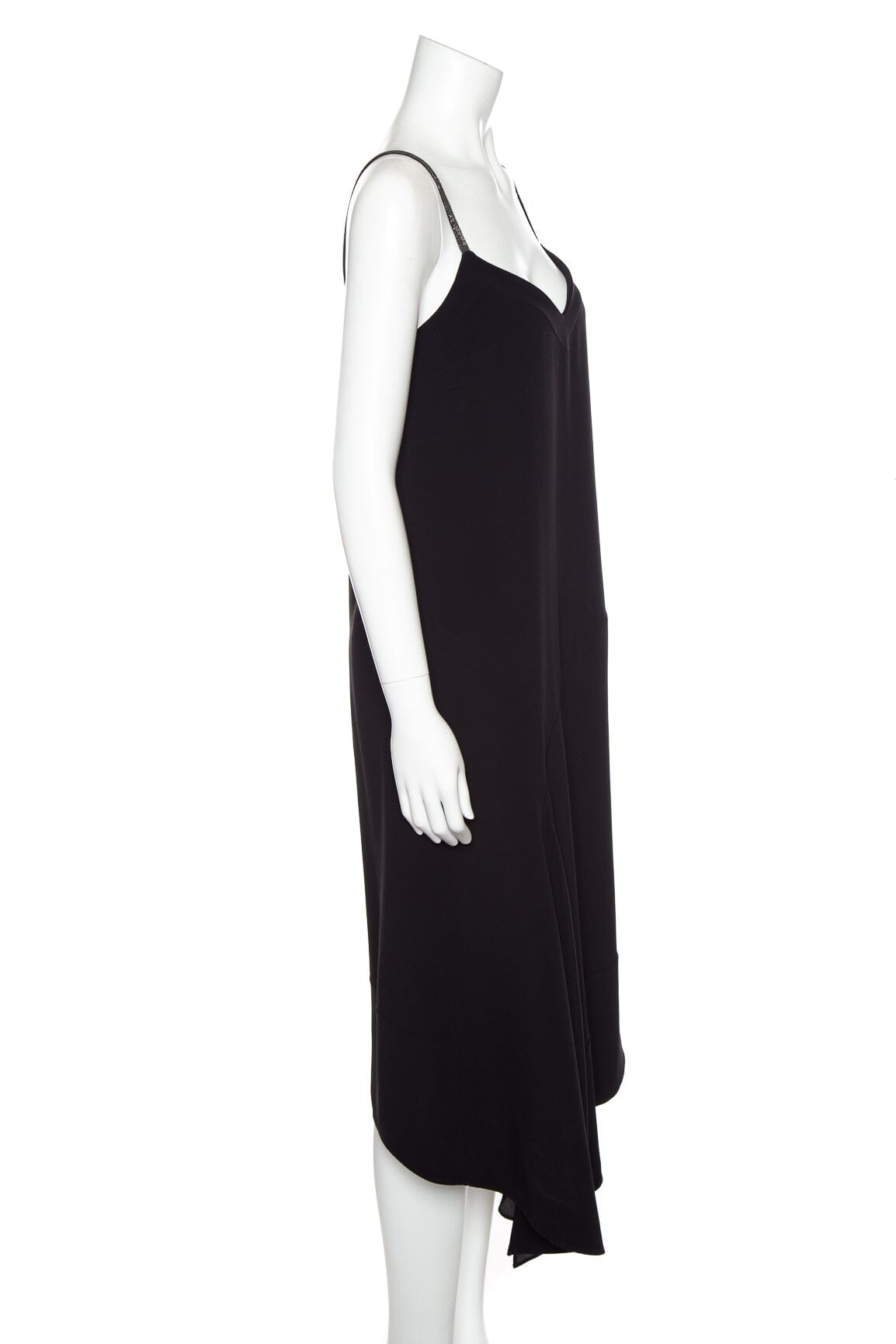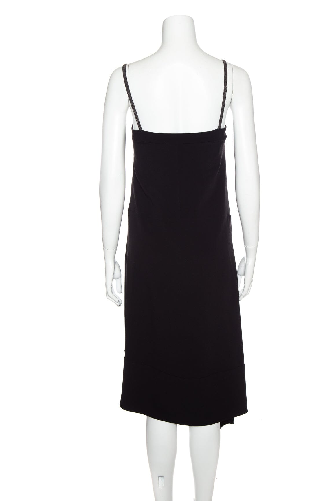 Brunello Cucinelli Black Midi V-Neck Dress w/ Monili Staps. This item is in very good condition.