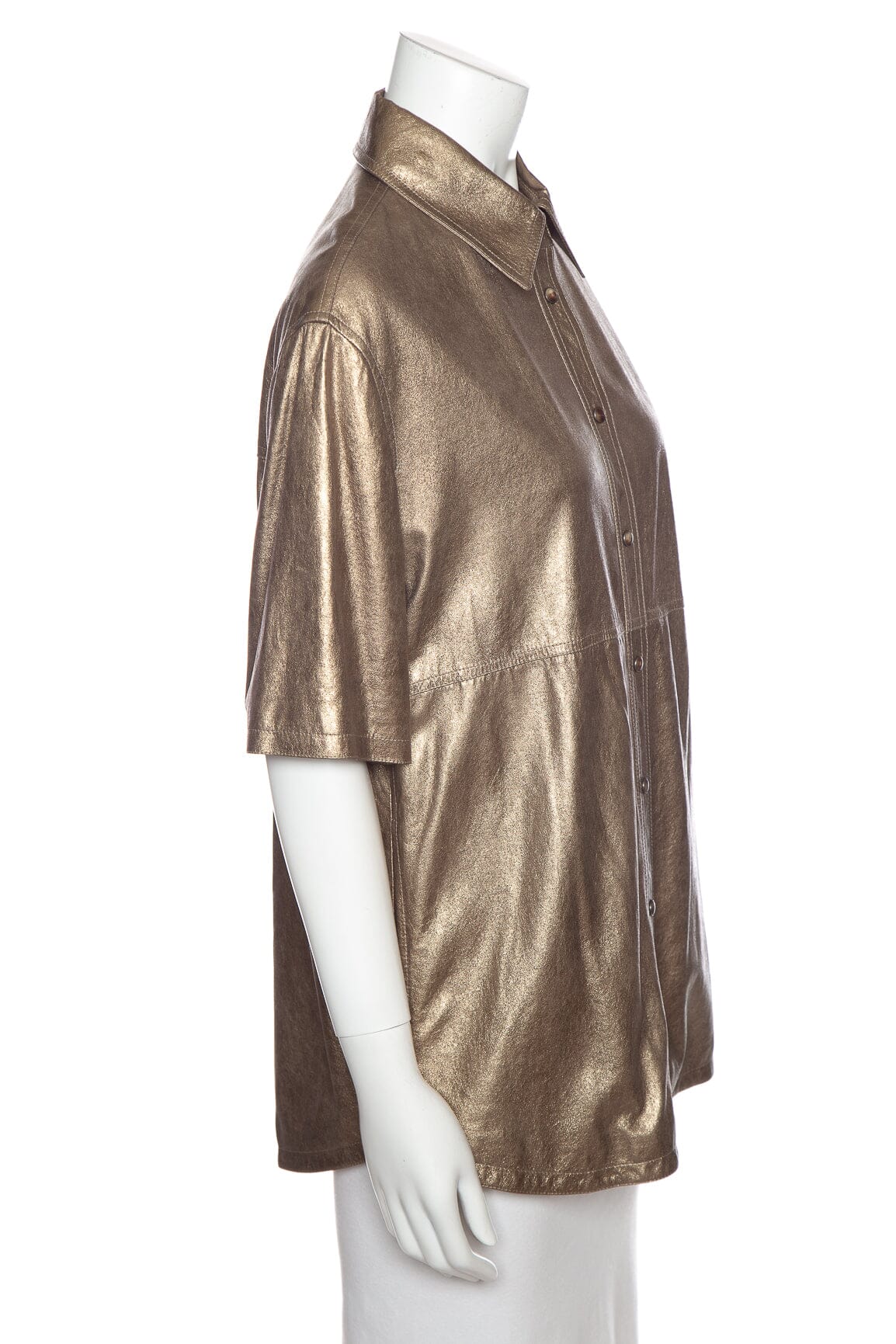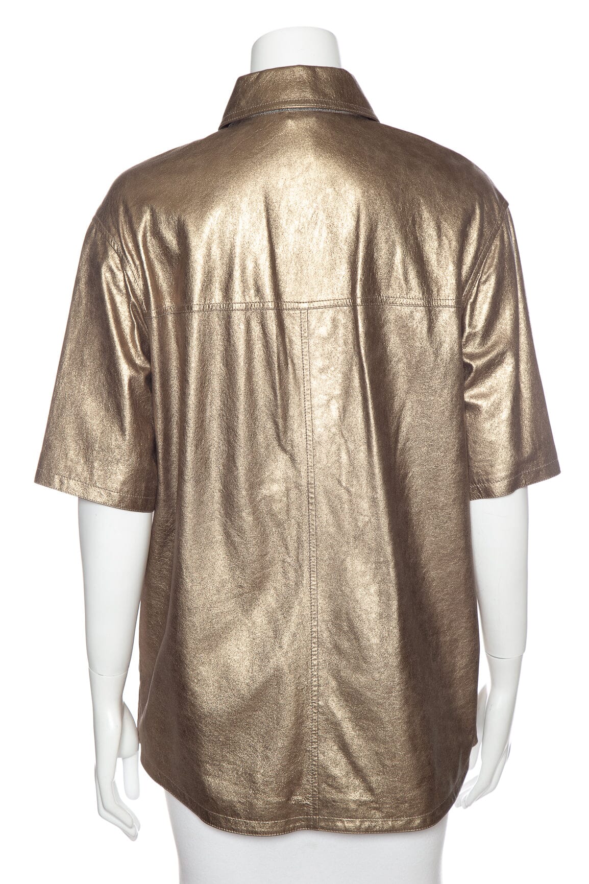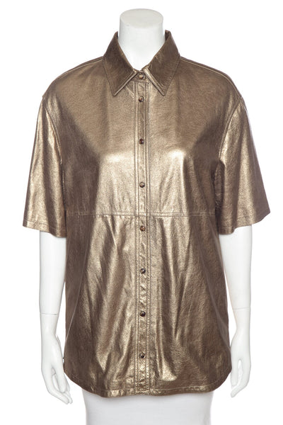 Brunello Cucinelli Bronze Gold Leather Button-Up Shirt. This item is new with tags.