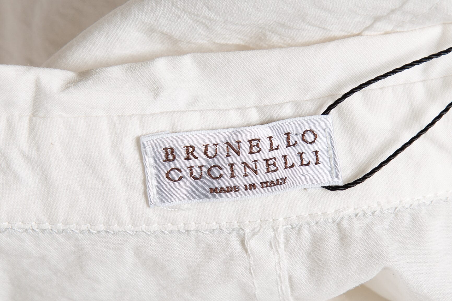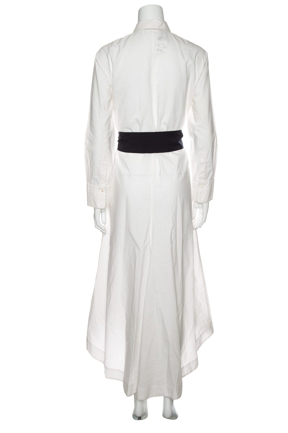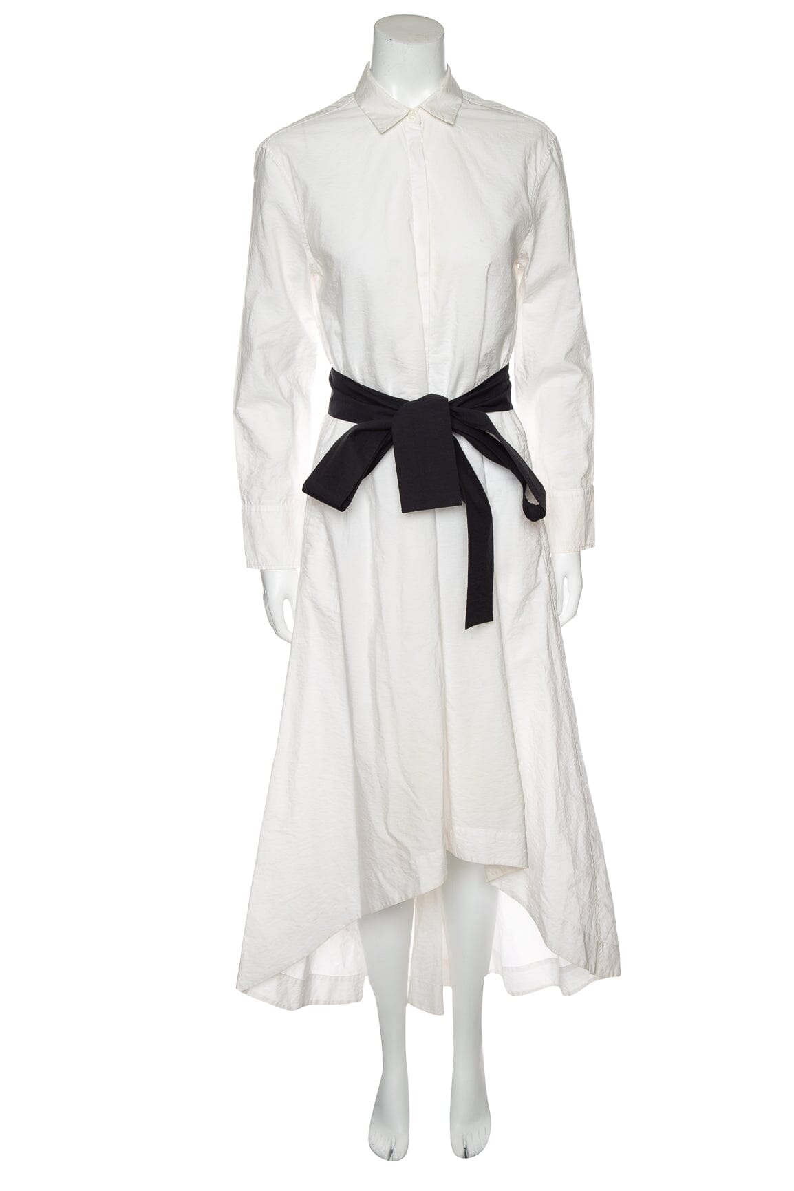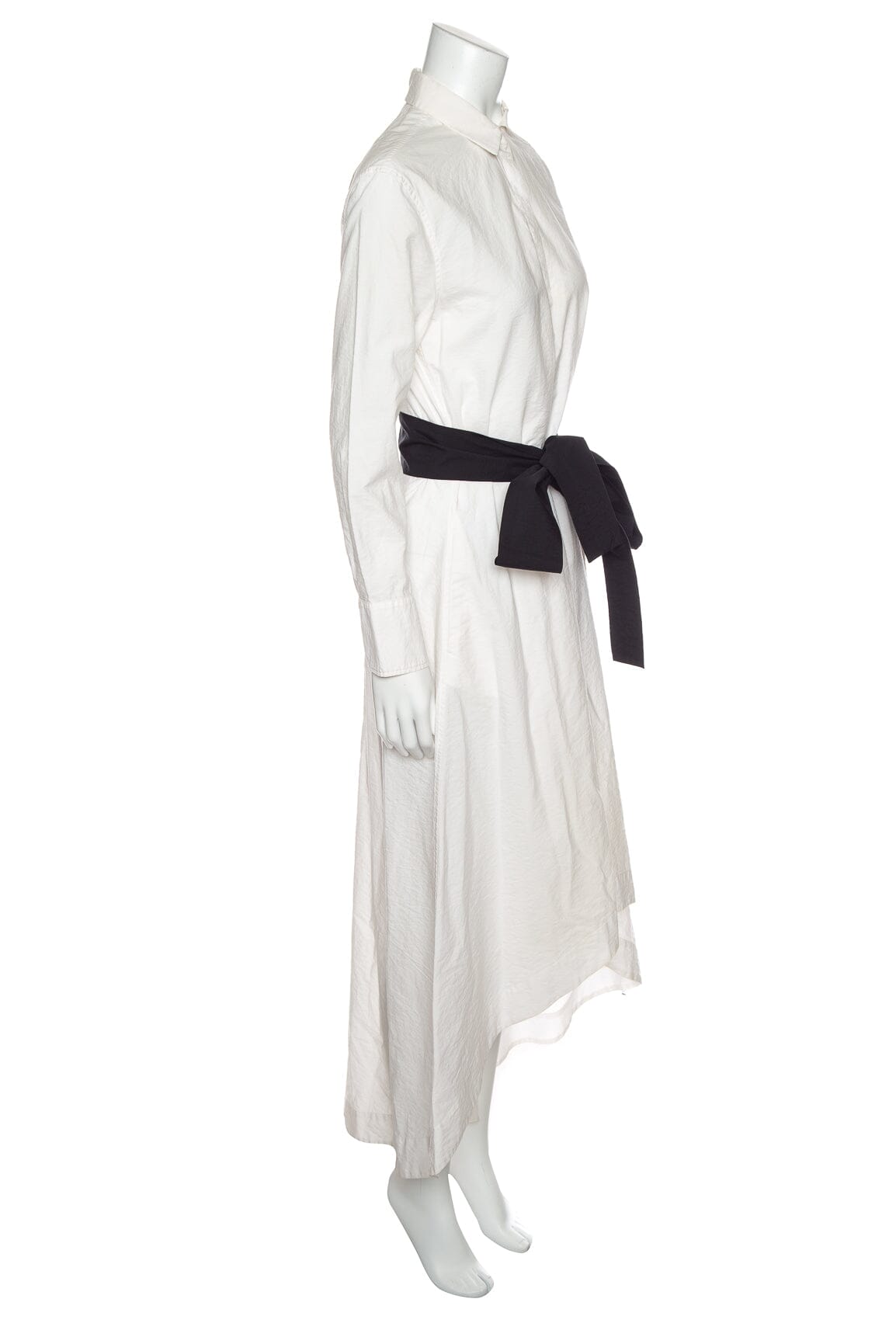 Brunello Cucinelli White Long Line Belted Dress. This item is in good condition; some discoloration on fabric,