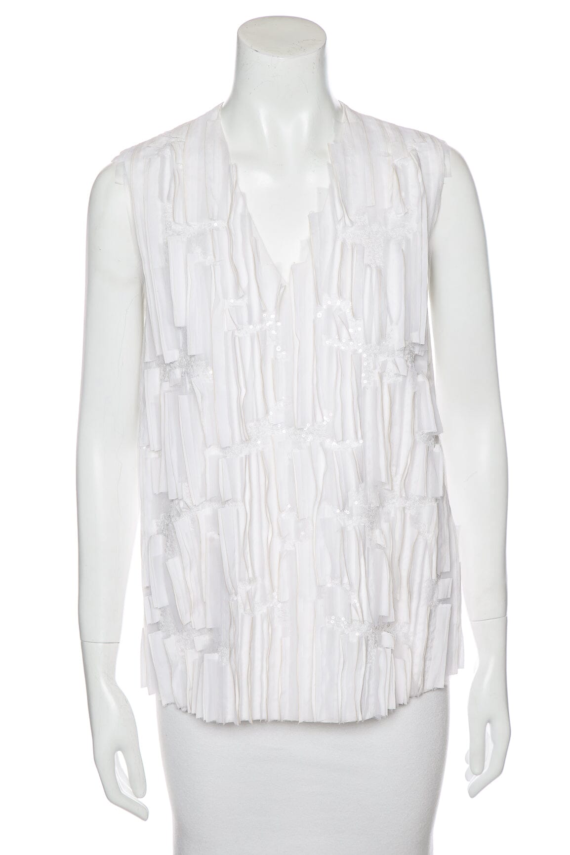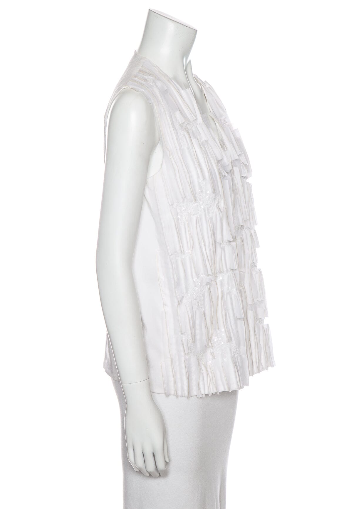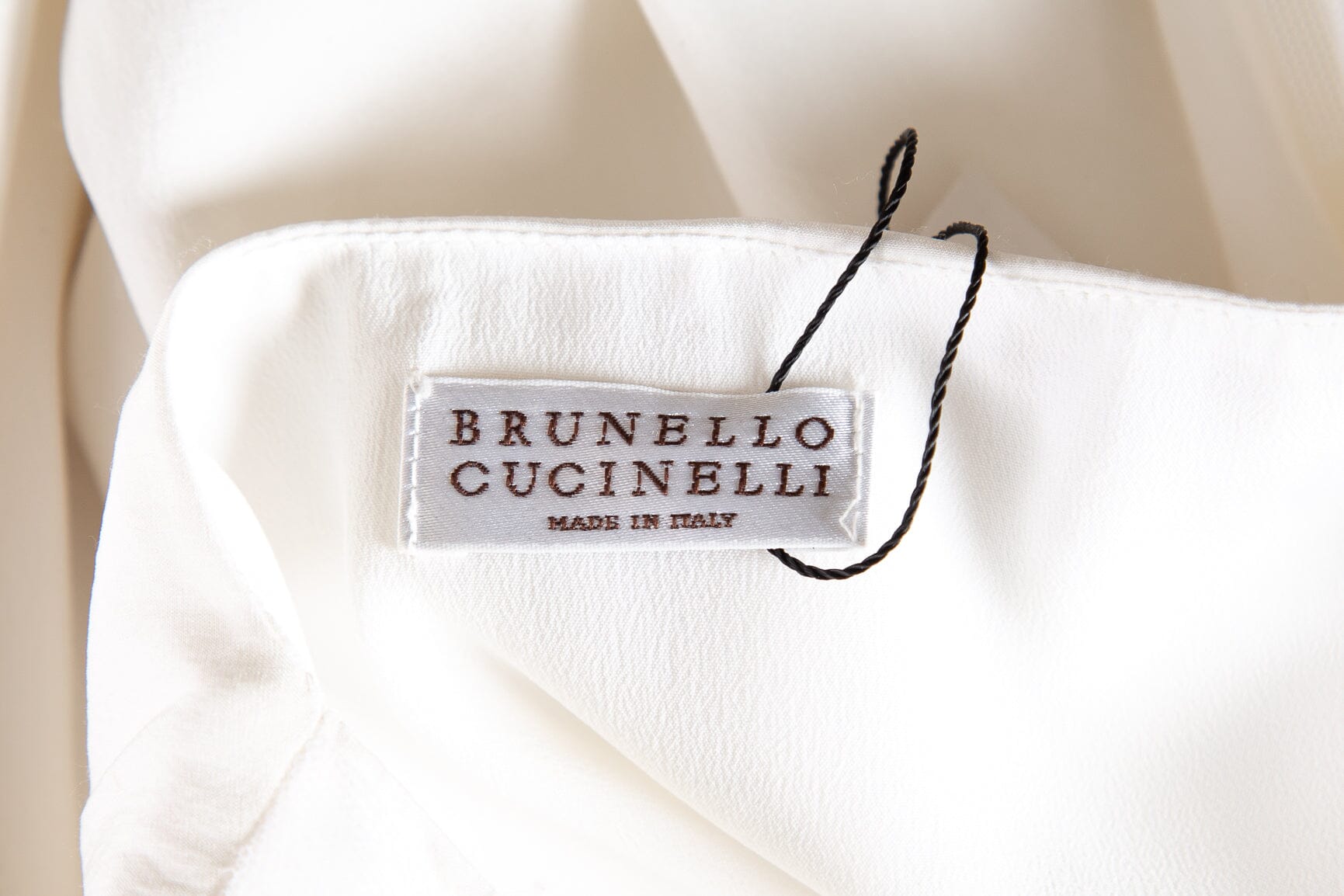 Brunello Cucinelli White Silk Blend Blouse with Tulle and Sequins. This item is in very good condition.