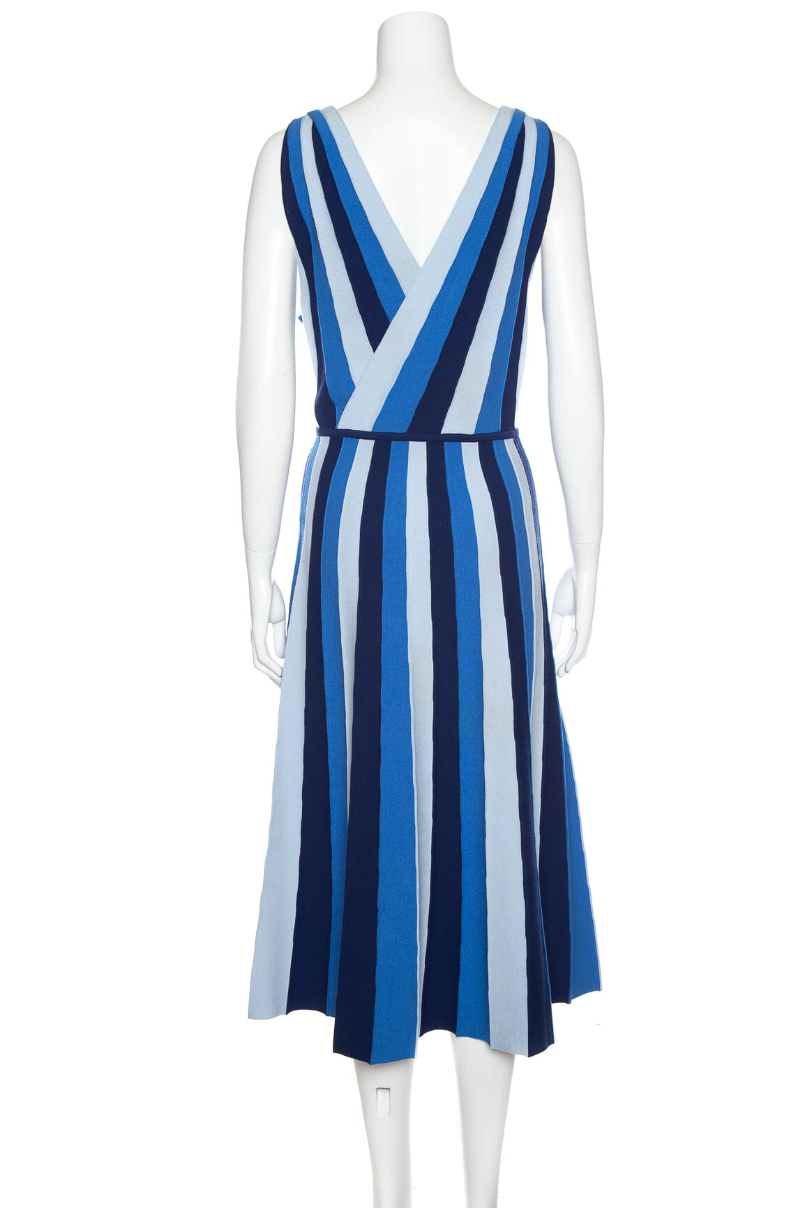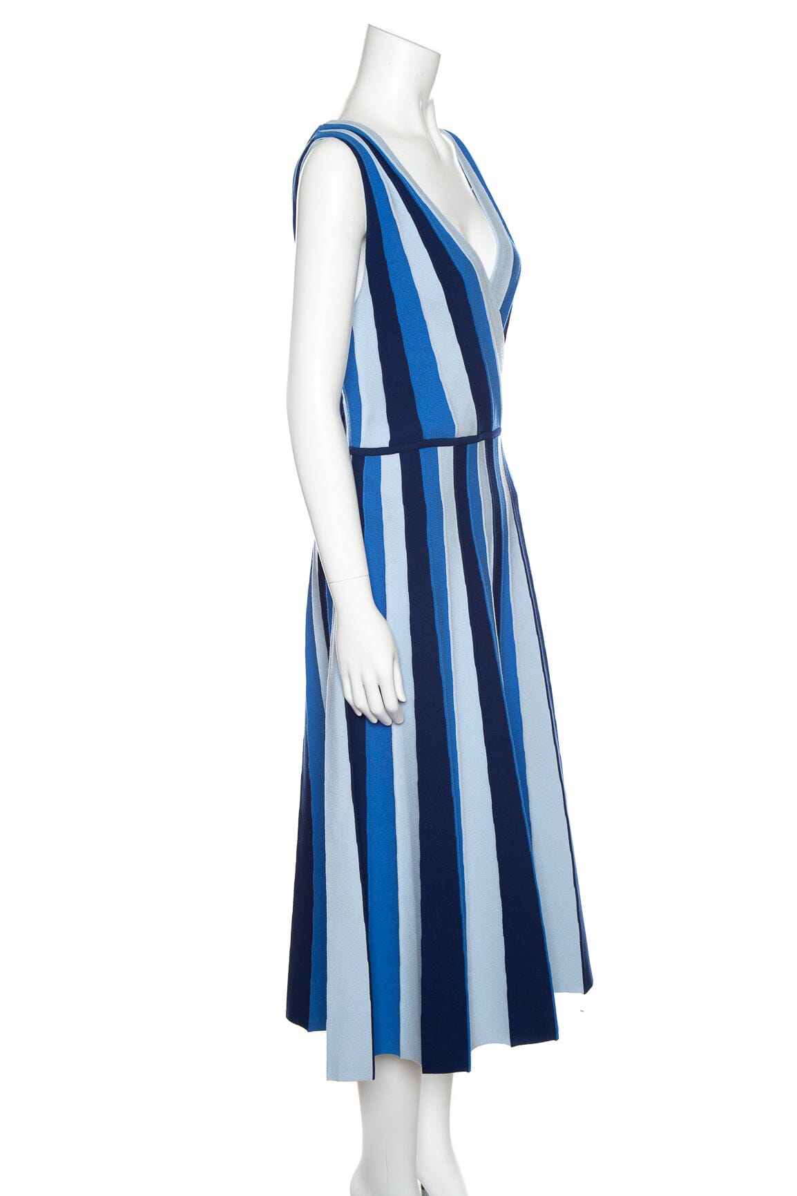 Carolina Herrera Blue Stripe Pleated  Heavy Knit Midi Dress. This item is in very good condition.