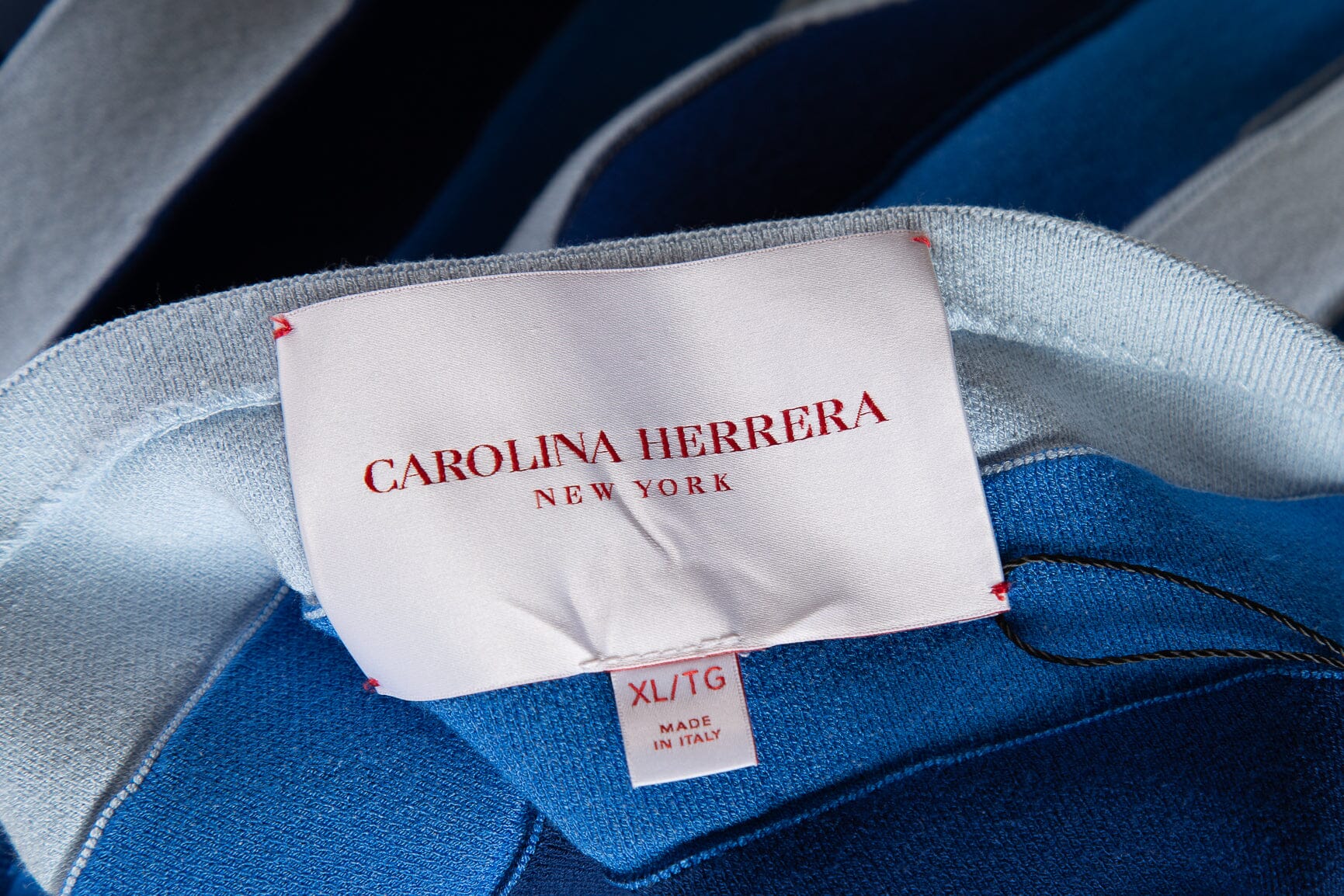 Carolina Herrera Blue Stripe Pleated Heavy Knit Midi Dress SZ XL
