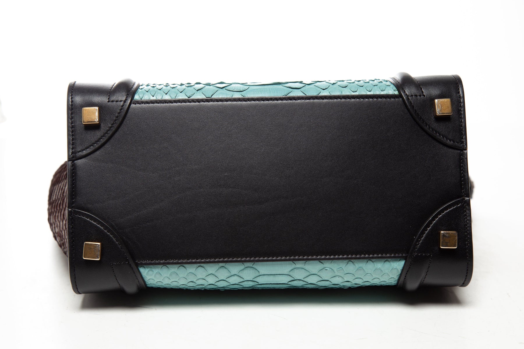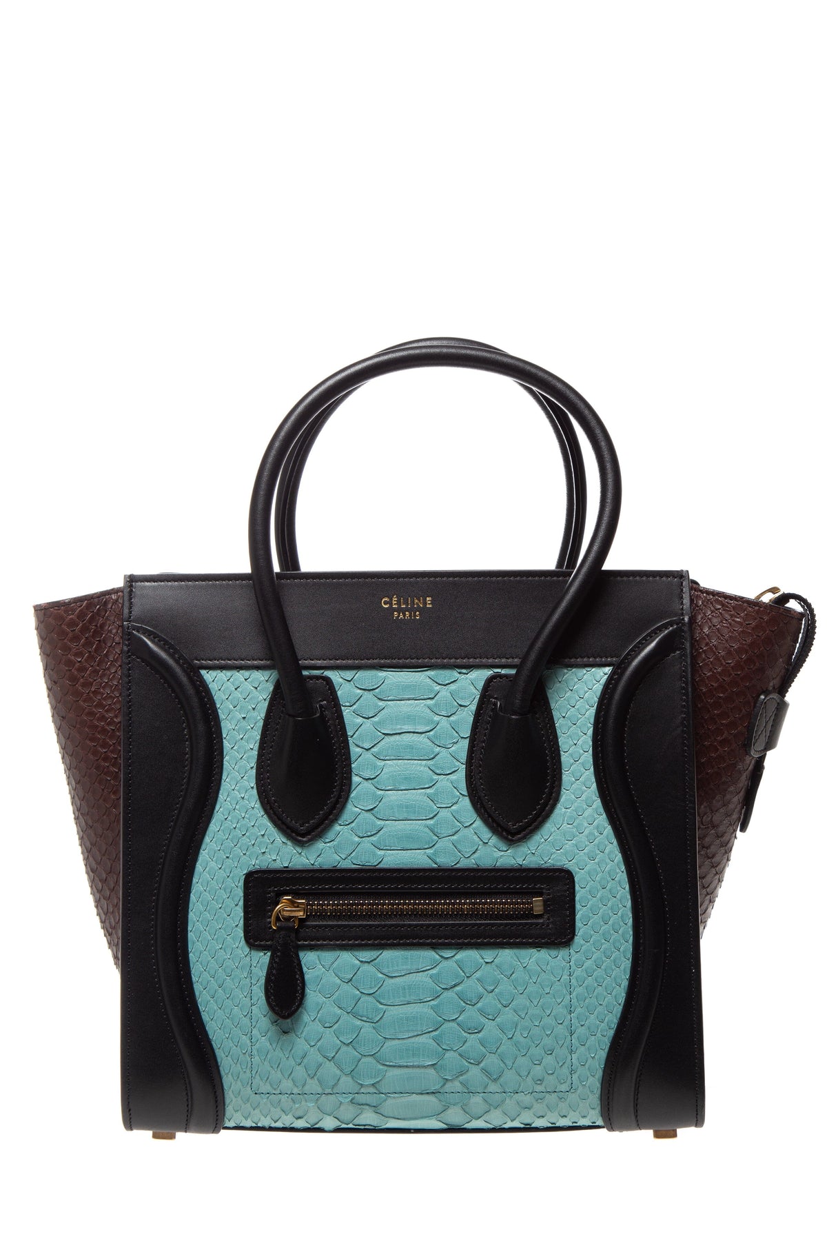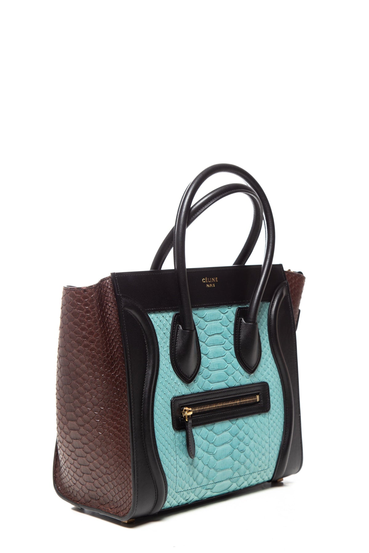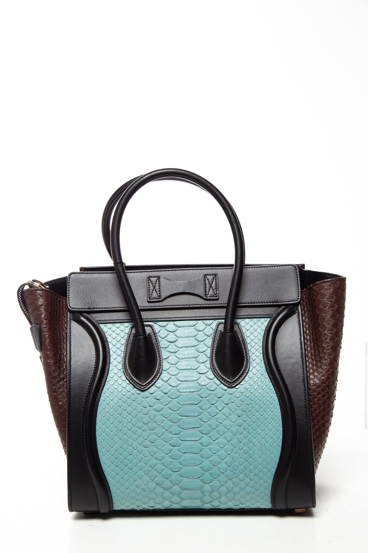 Celine Black/Aqua/Brown Leather Python Luggage Tote. This item is in very good condition.