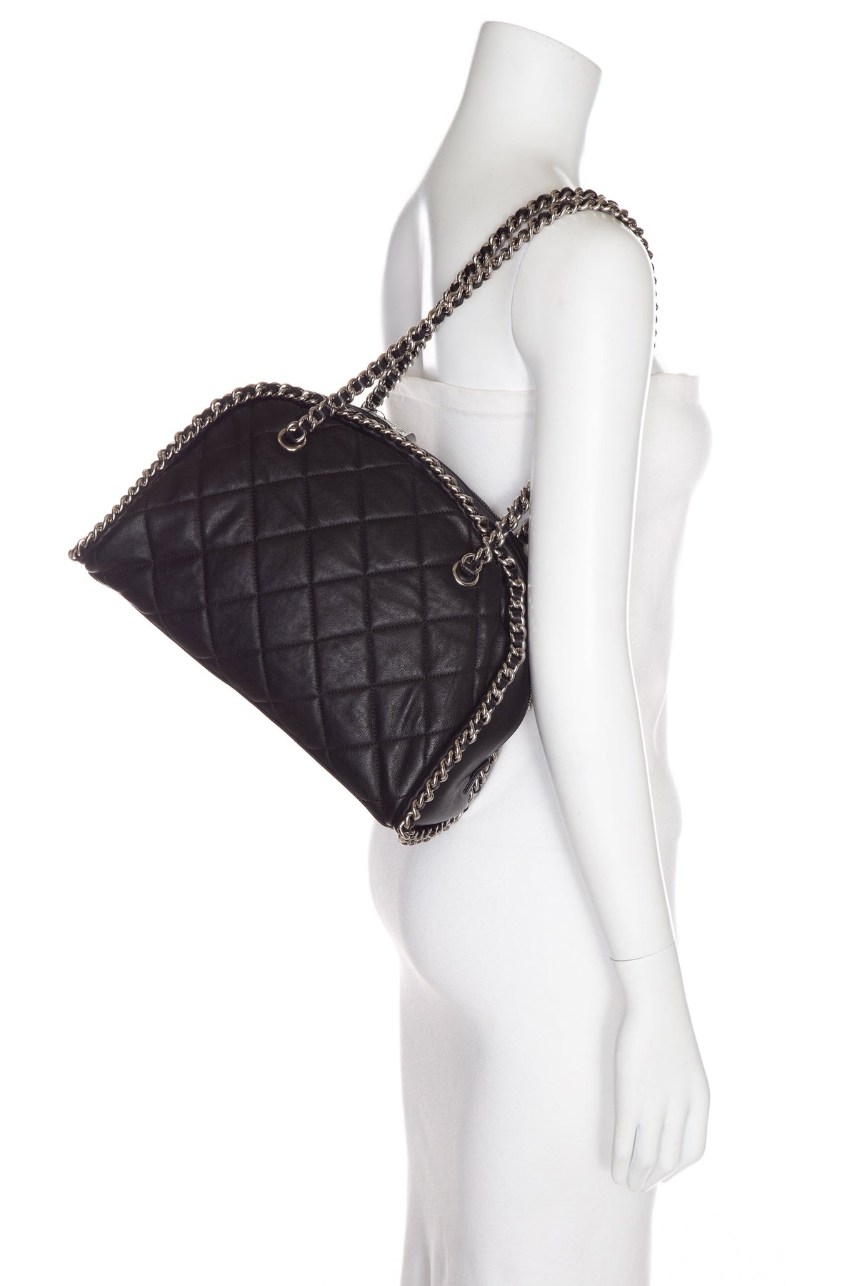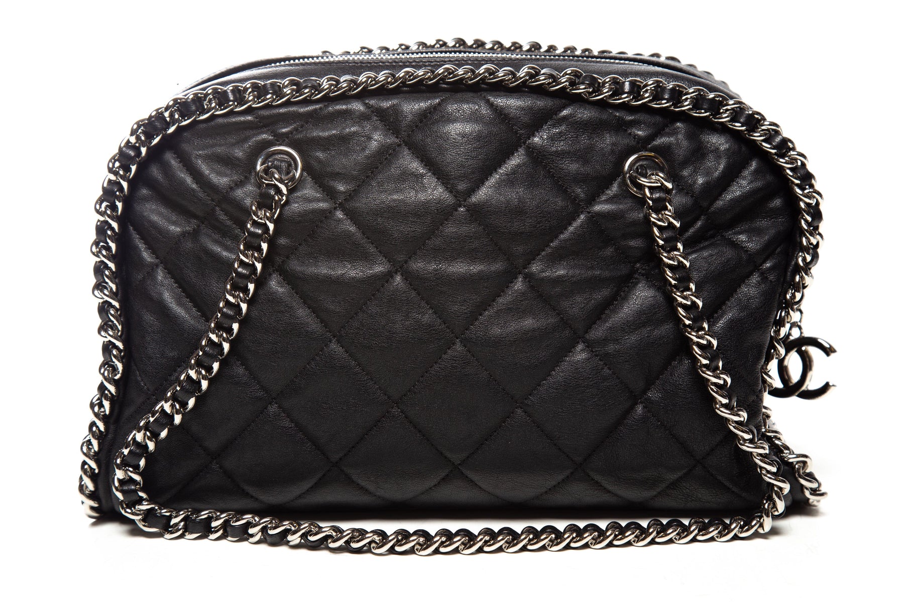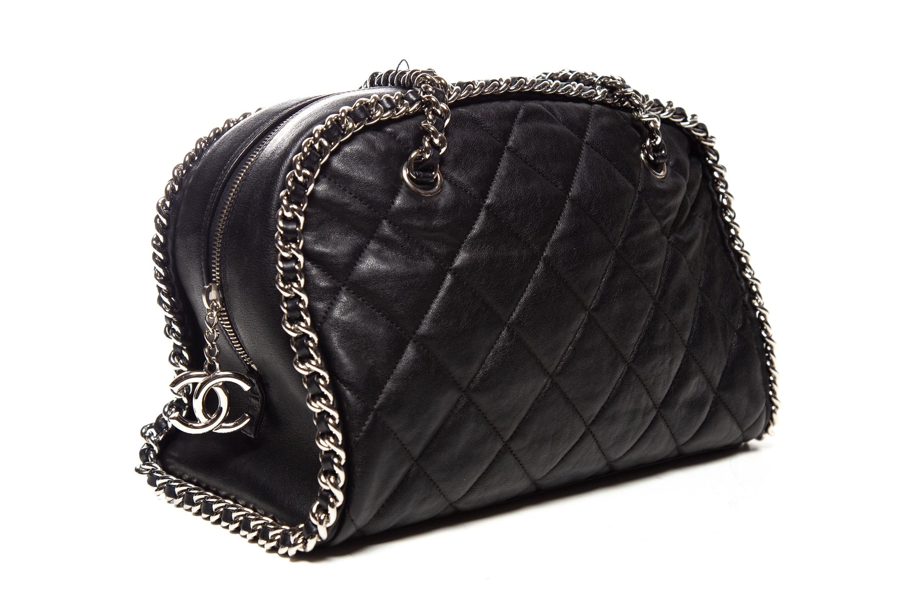 Chanel 2012 Black Quilted Leather Chain Around Quilted Bowler Bag. This item is in very good condition.