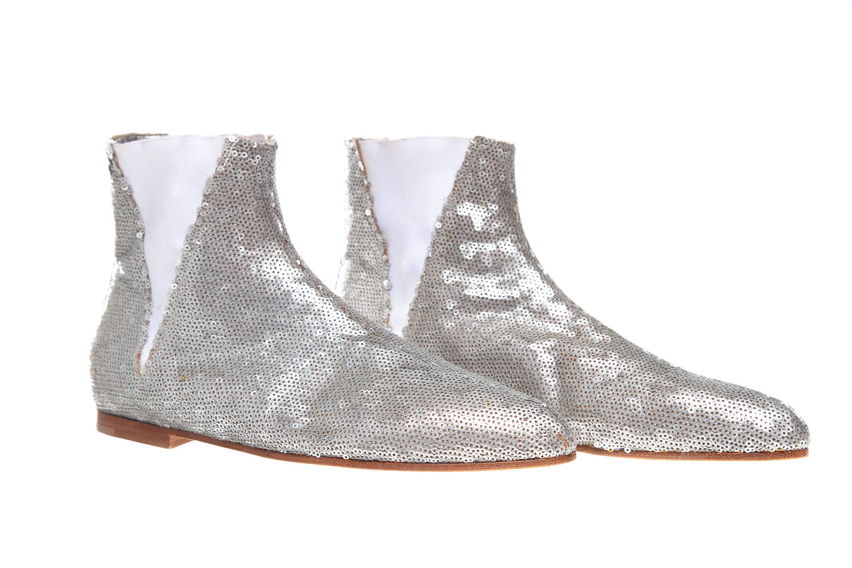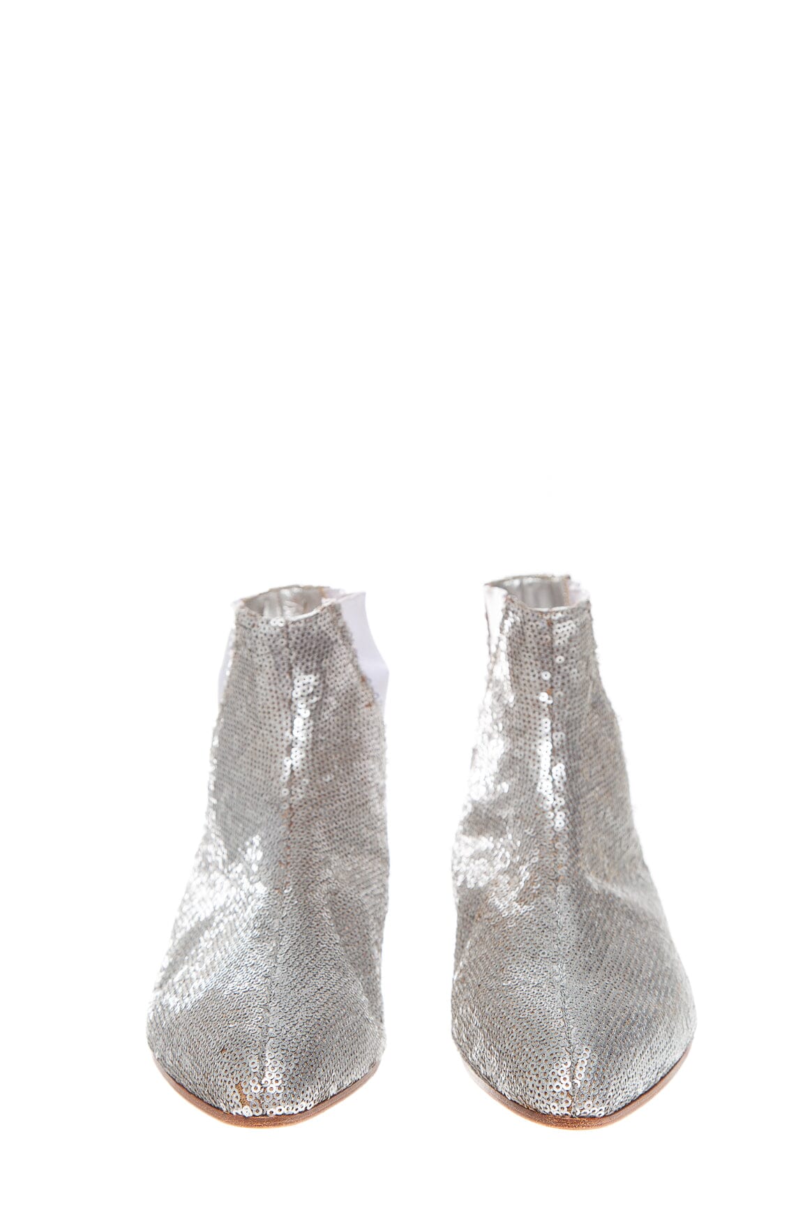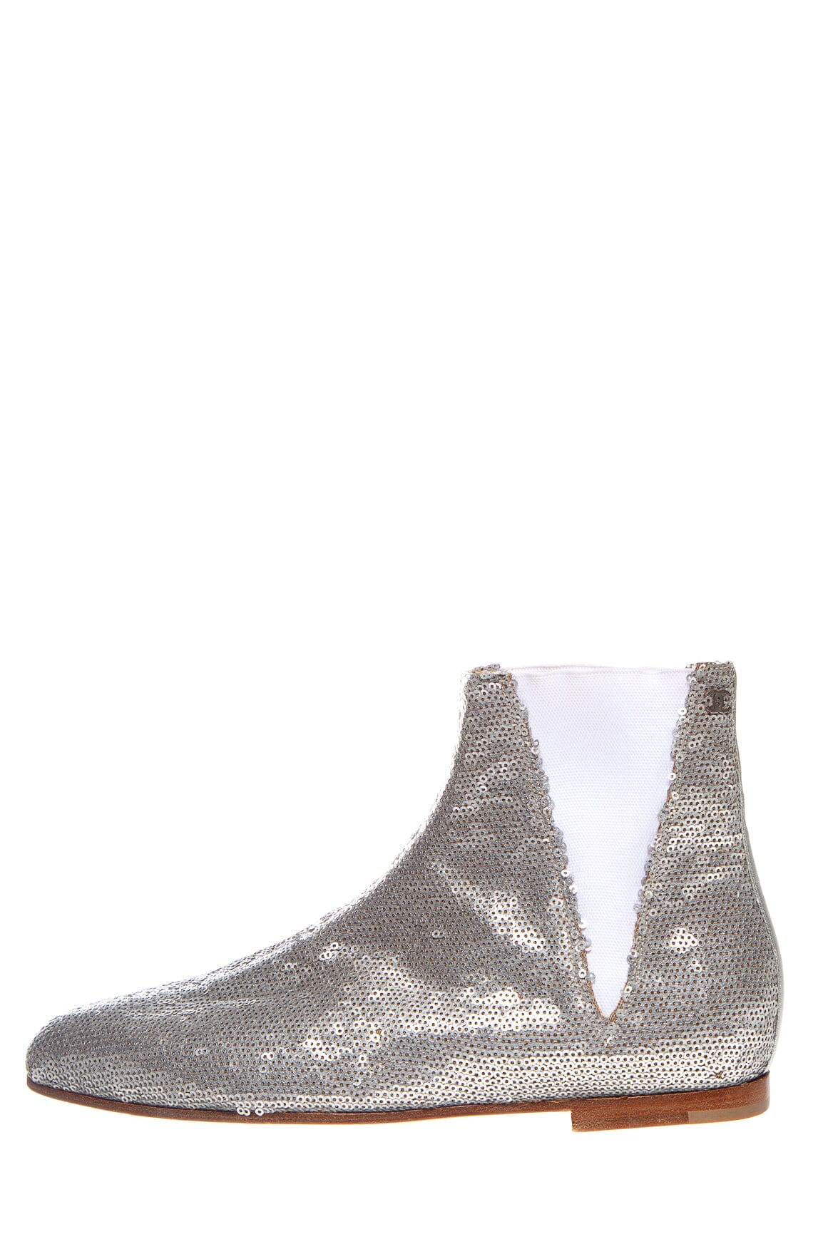Chanel 2012 Interlocking CC Silver Sequin Ankle Booties SZ 39