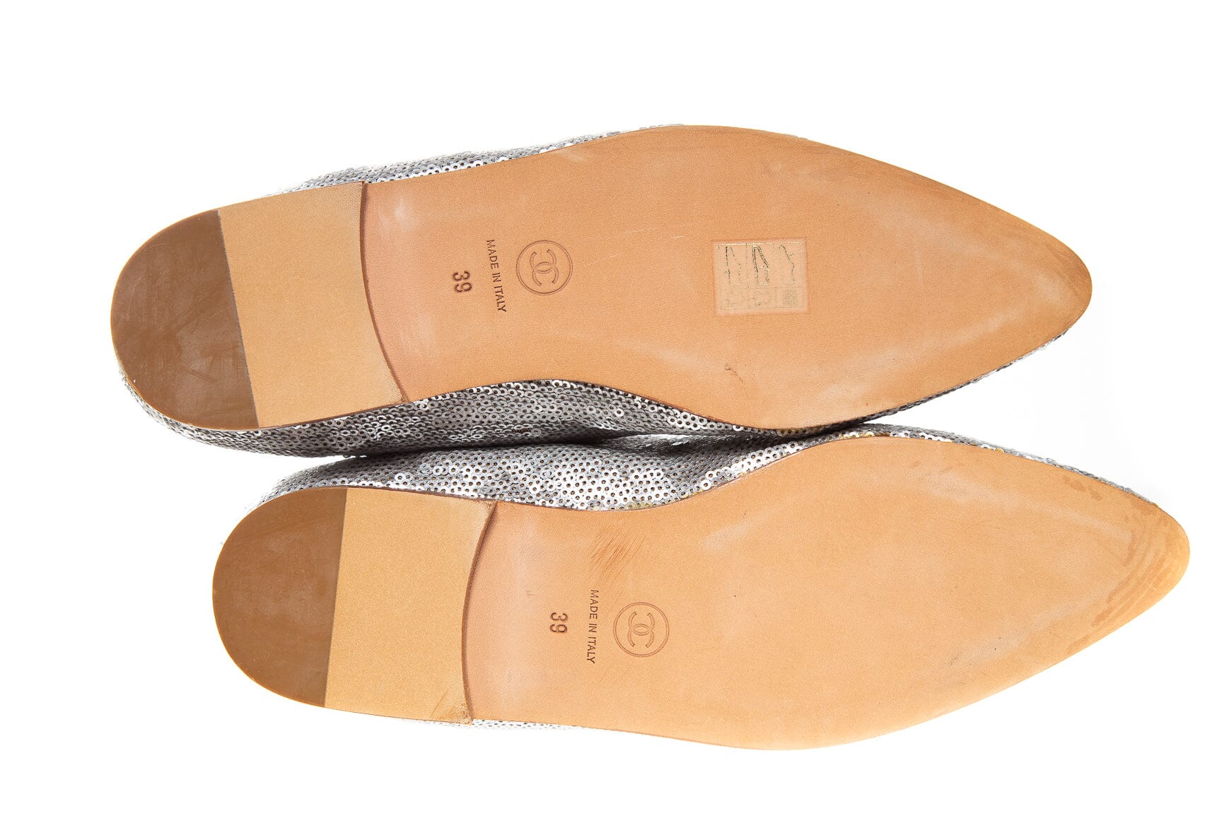 [{"id":49137103274221,"title":"Silver","option1":"Silver","option2":null,"option3":null,"sku":"235077","requires_shipping":true,"taxable":true,"featured_image":null,"available":true,"name":"Chanel 2012 Interlocking CC Silver Sequin Ankle Booties SZ 39 - Silver","public_title":"Silver","options":["Silver"],"price":49595,"weight":454,"compare_at_price":null,"inventory_quantity":1,"inventory_management":"shopify","inventory_policy":"deny","barcode":"00235077","requires_selling_plan":false,"selling_plan_allocations":[]}]