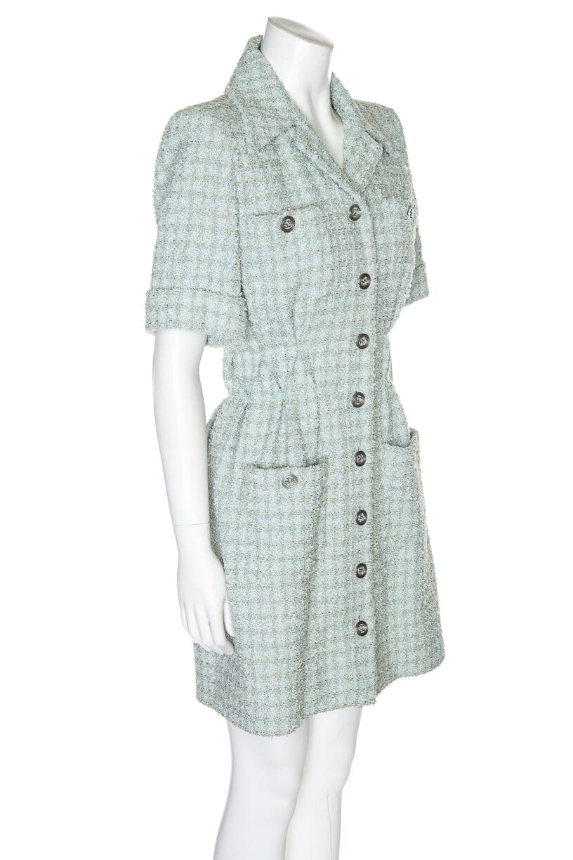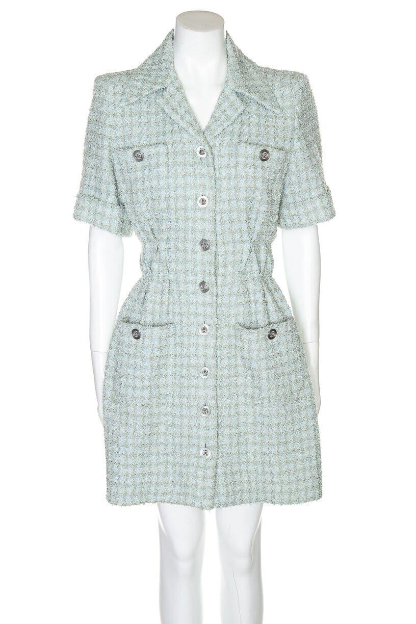 Chanel 2020 Spring/Summer Turquoise Fantasy Tweed S/S Mini Dress. This item is new with tags.