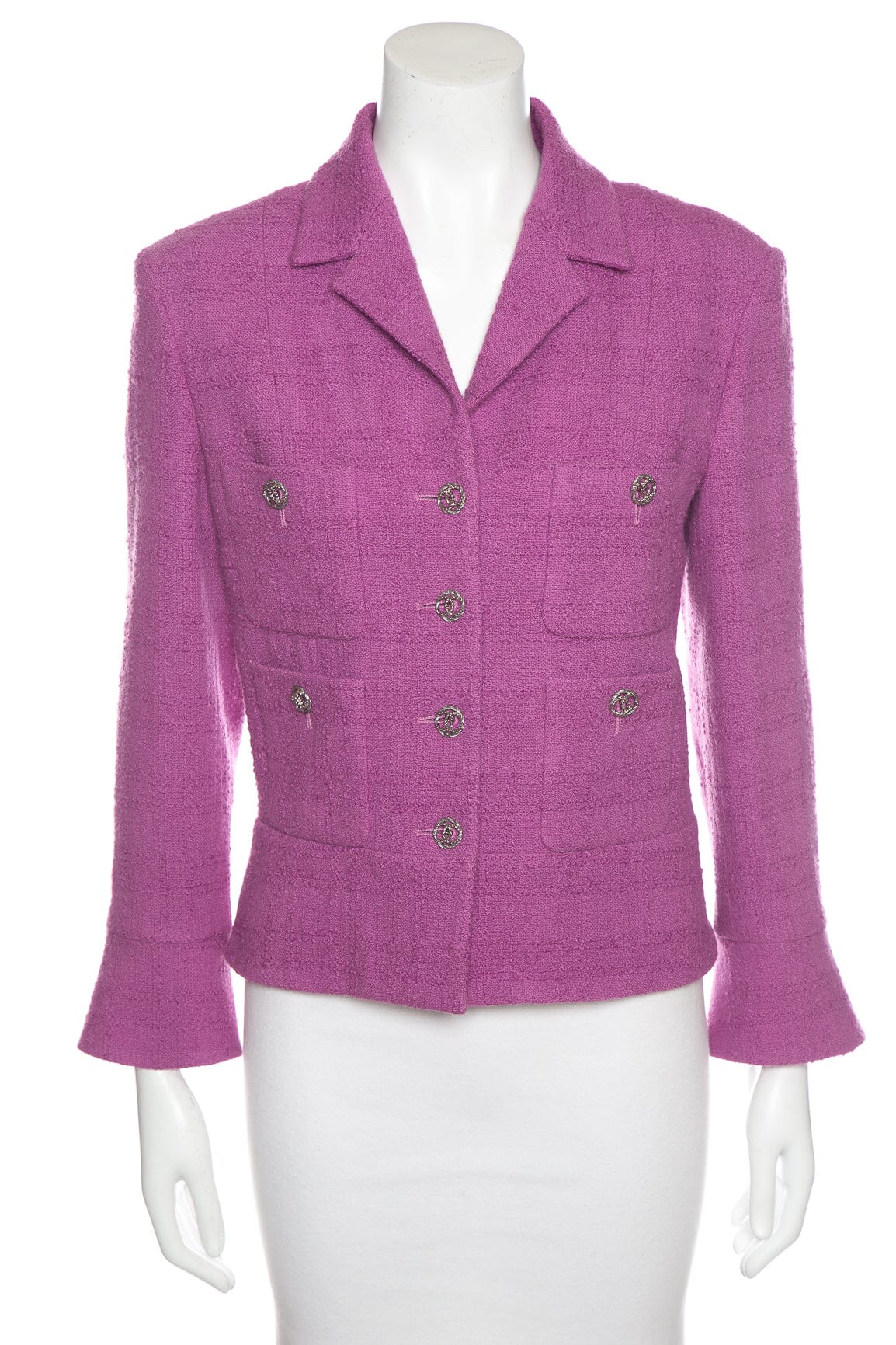 Chanel 2023 Purple Wool Jacket w/Silver Interlocking CC Buttons. This item is in very good condition.