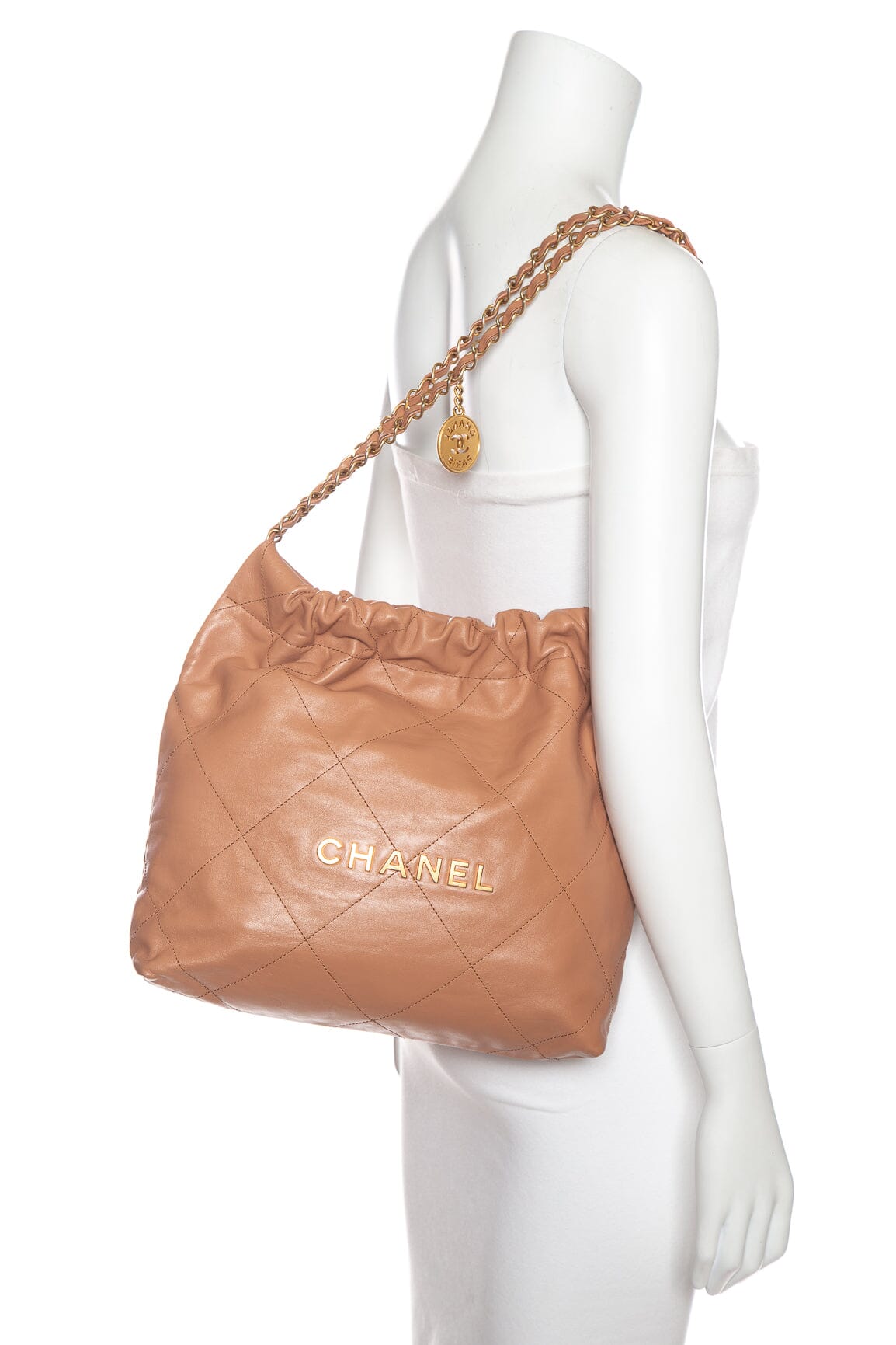 Chanel 22 Dark Beige Small Hobo Bag w/Pouch. This item is in very good condition.