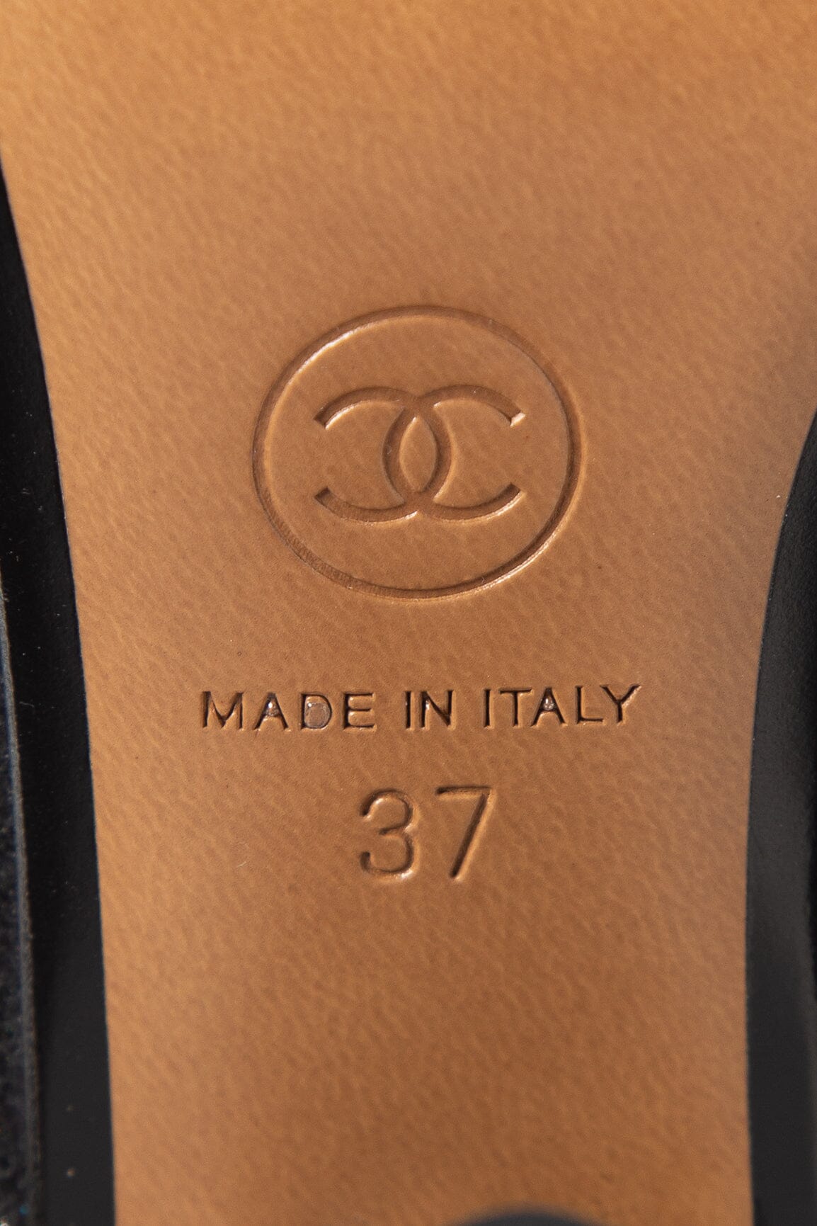 Chanel Black Glitter Knee High Heel Boots SZ 37