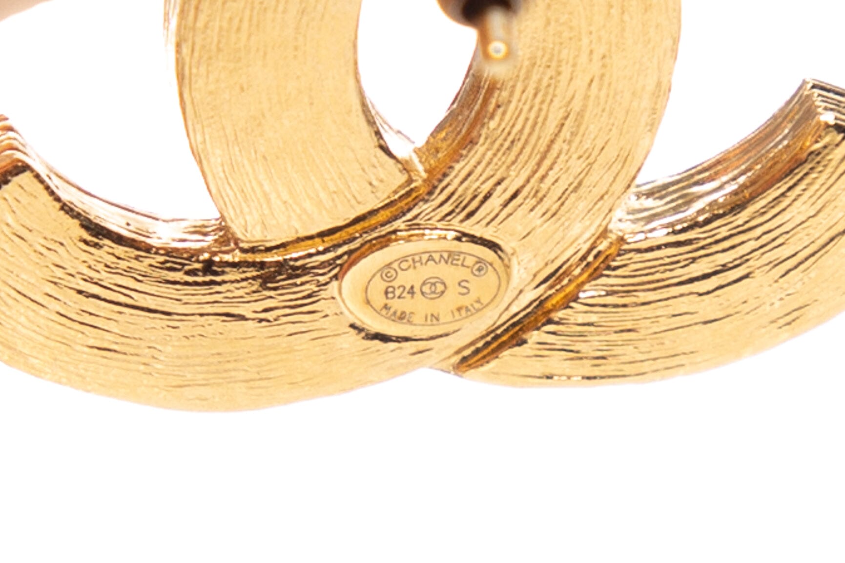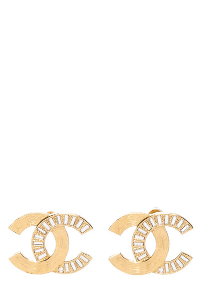 Chanel Gold Interlocking CC Embellished Crystal Pierced Earrings