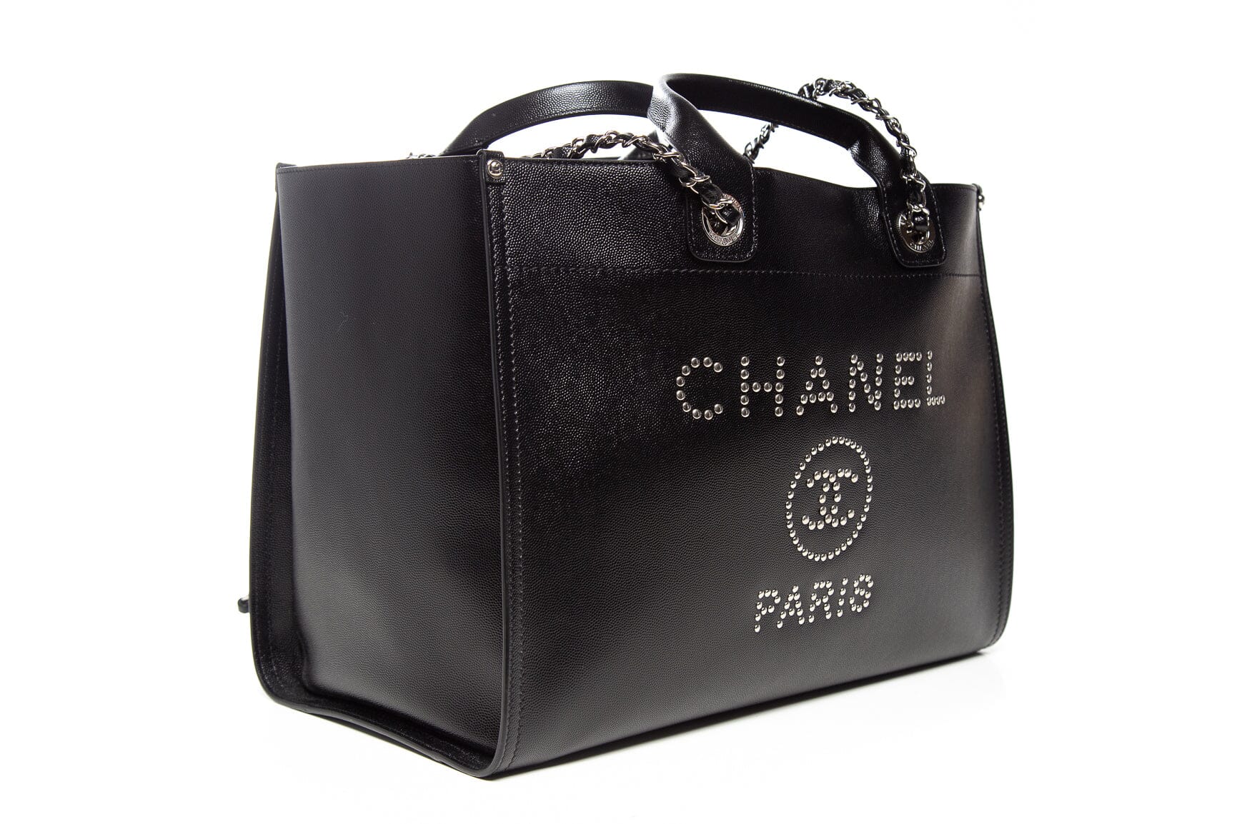 Chanel Large Black Studded Deavuille Tote. This item is in very good condition.