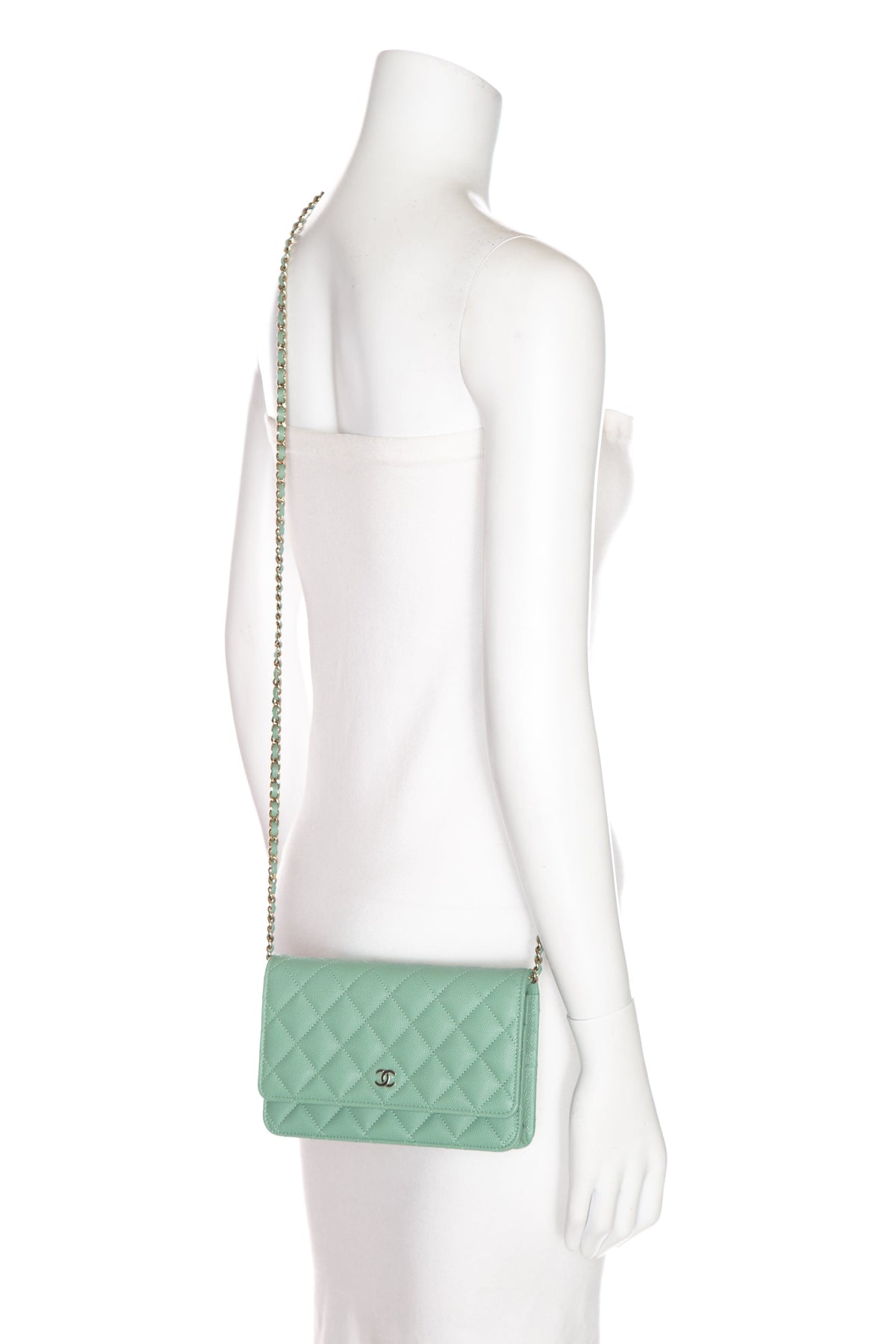Chanel Mint Green Caviar Quilted WOC. This item is in very good condition.