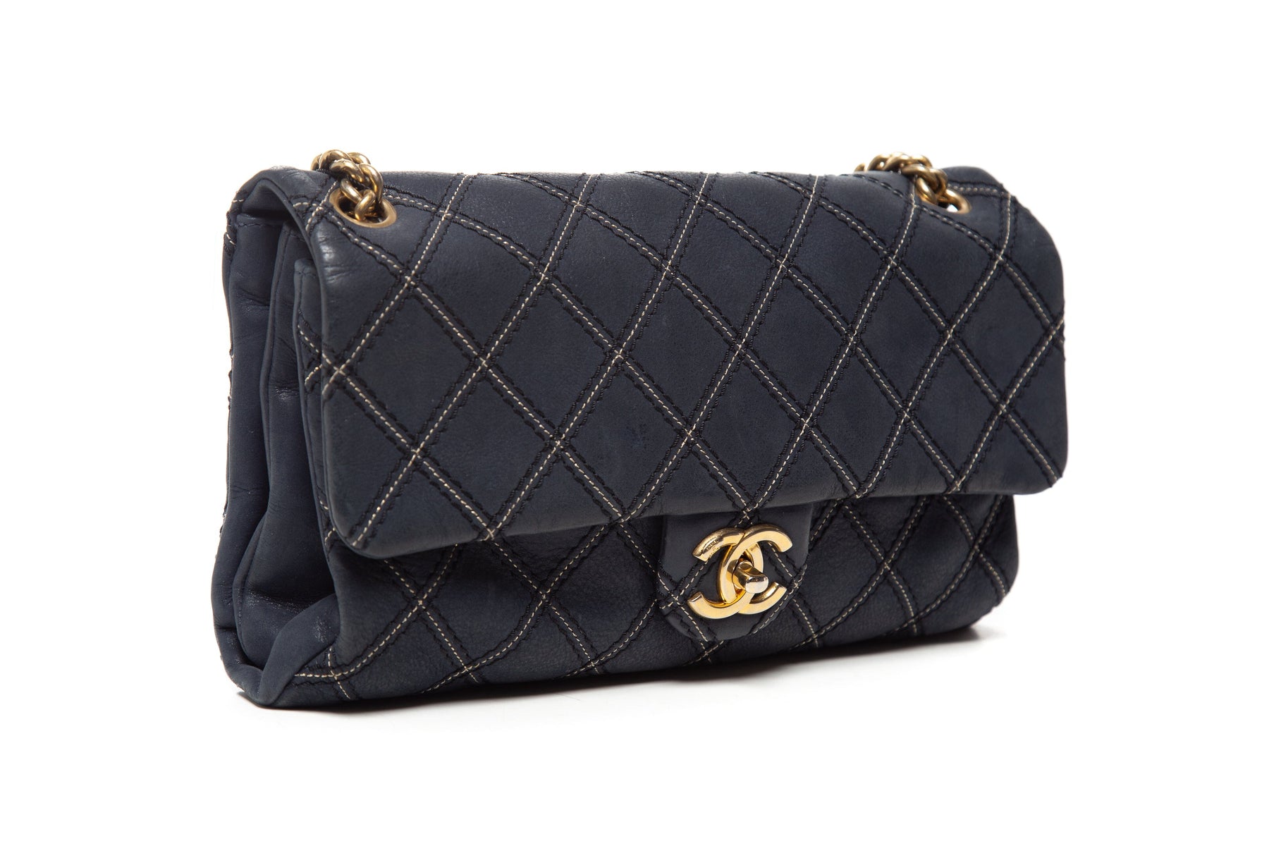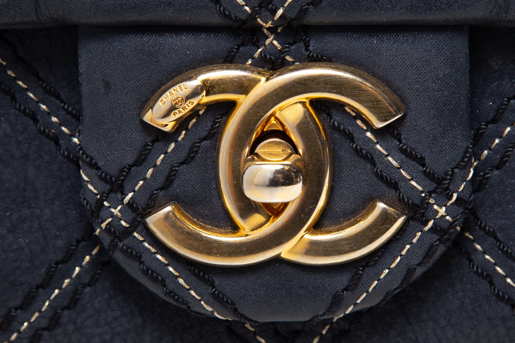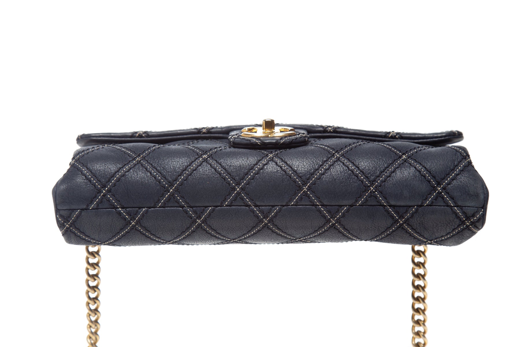 Chanel Navy/White Leather Surpique Wild Stitch Single Flap Shoulder Bag. This item is in very good condition.