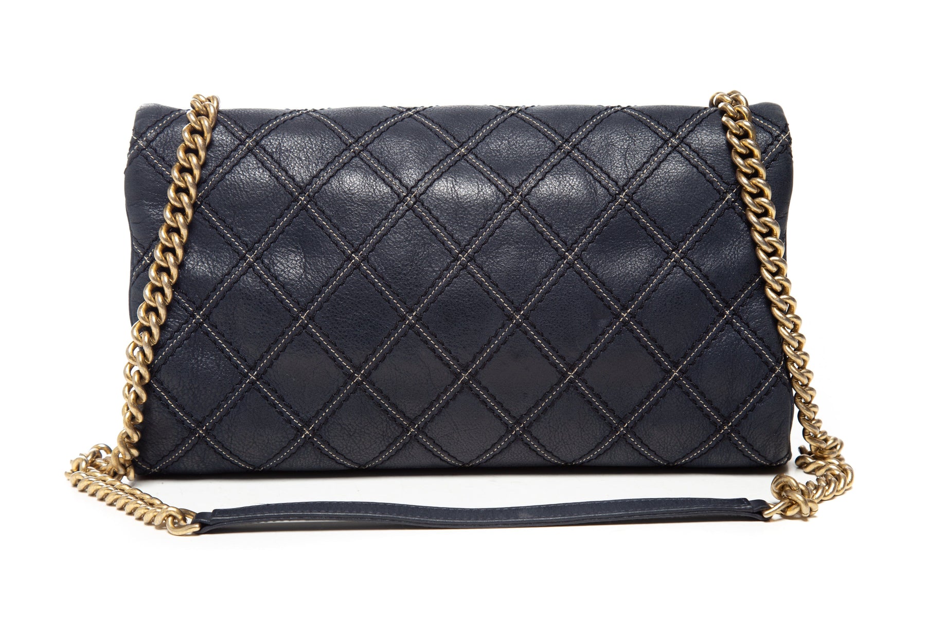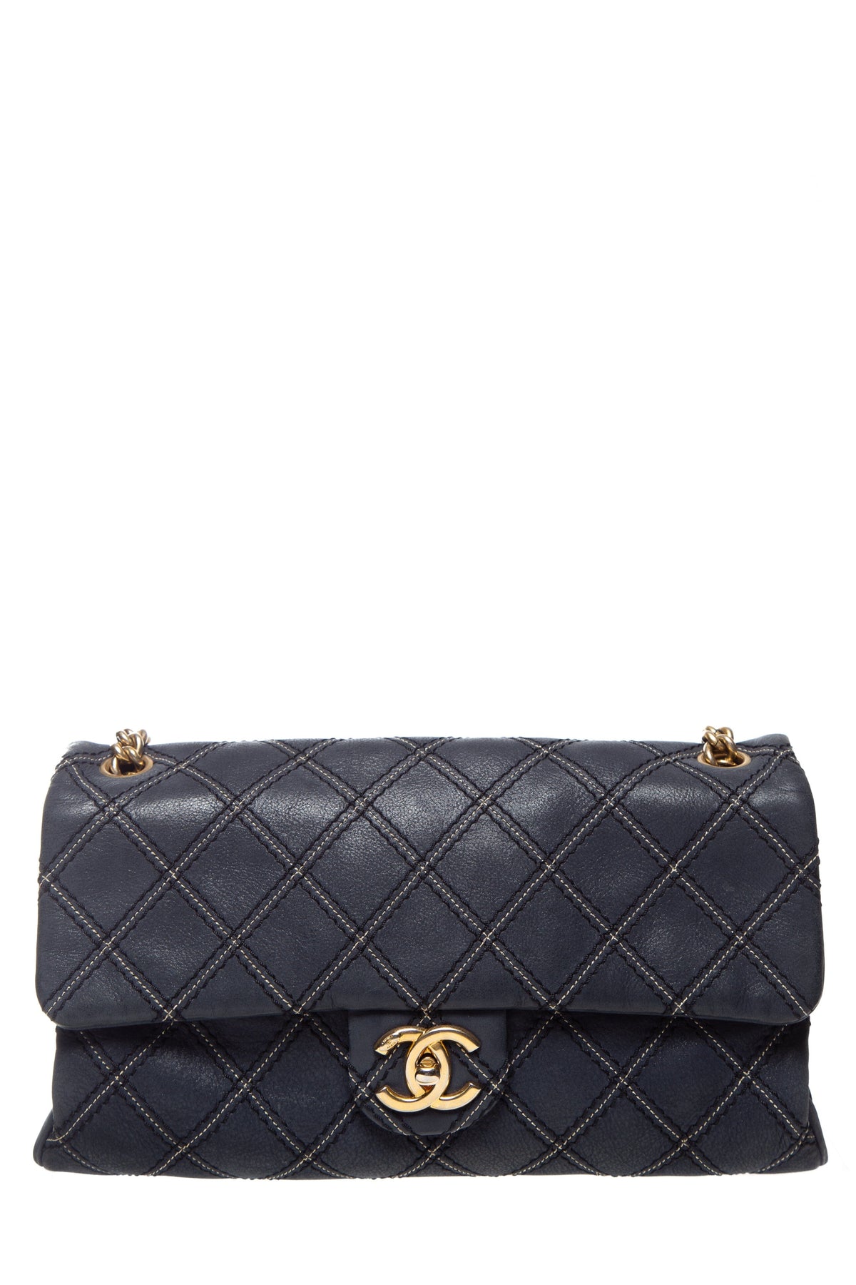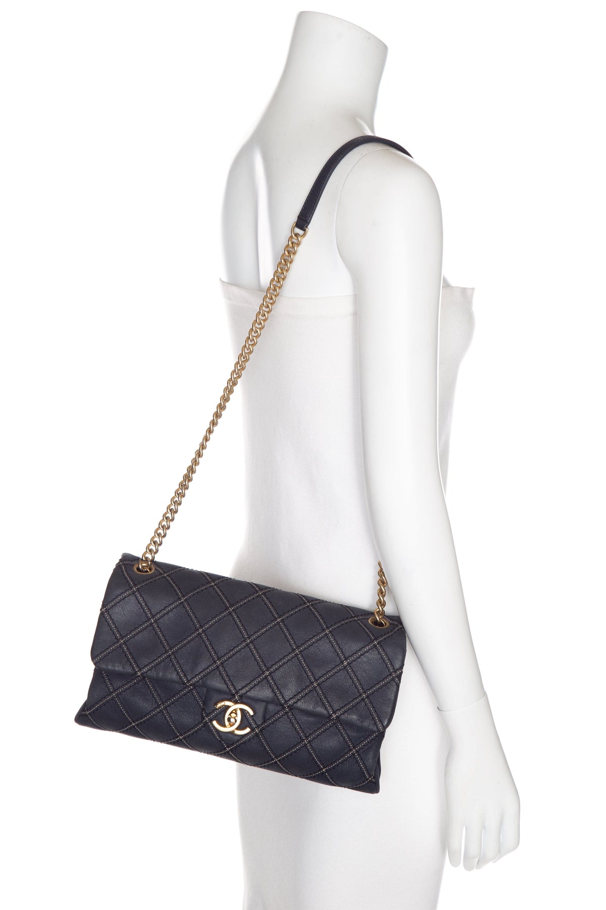 Chanel Navy/White Leather Surpique Wild Stitch Single Flap Shoulder Bag. This item is in very good condition.