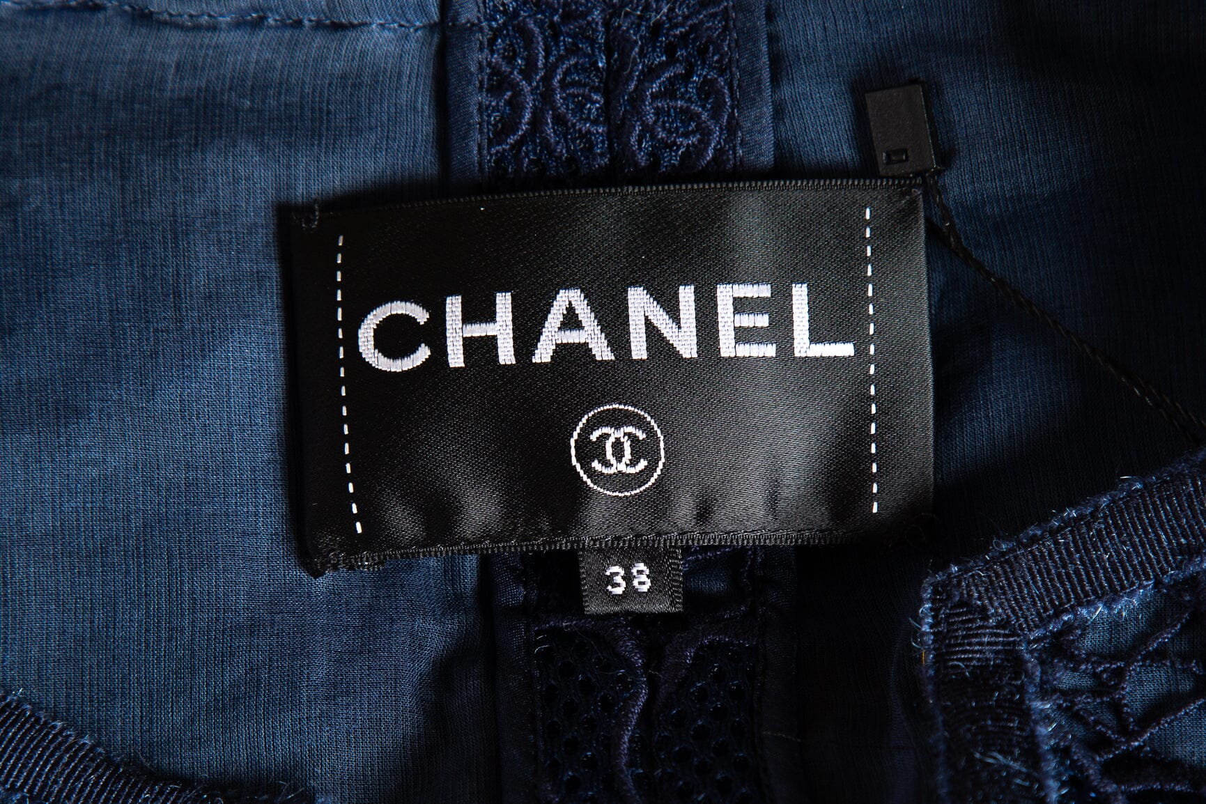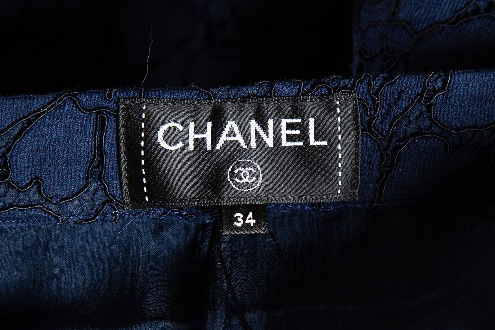 Chanel Navy Floral Lace 2 PC Evening Jacket and Pants Set. This item is in very good condition.