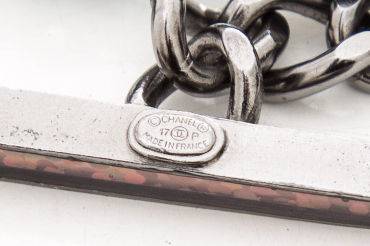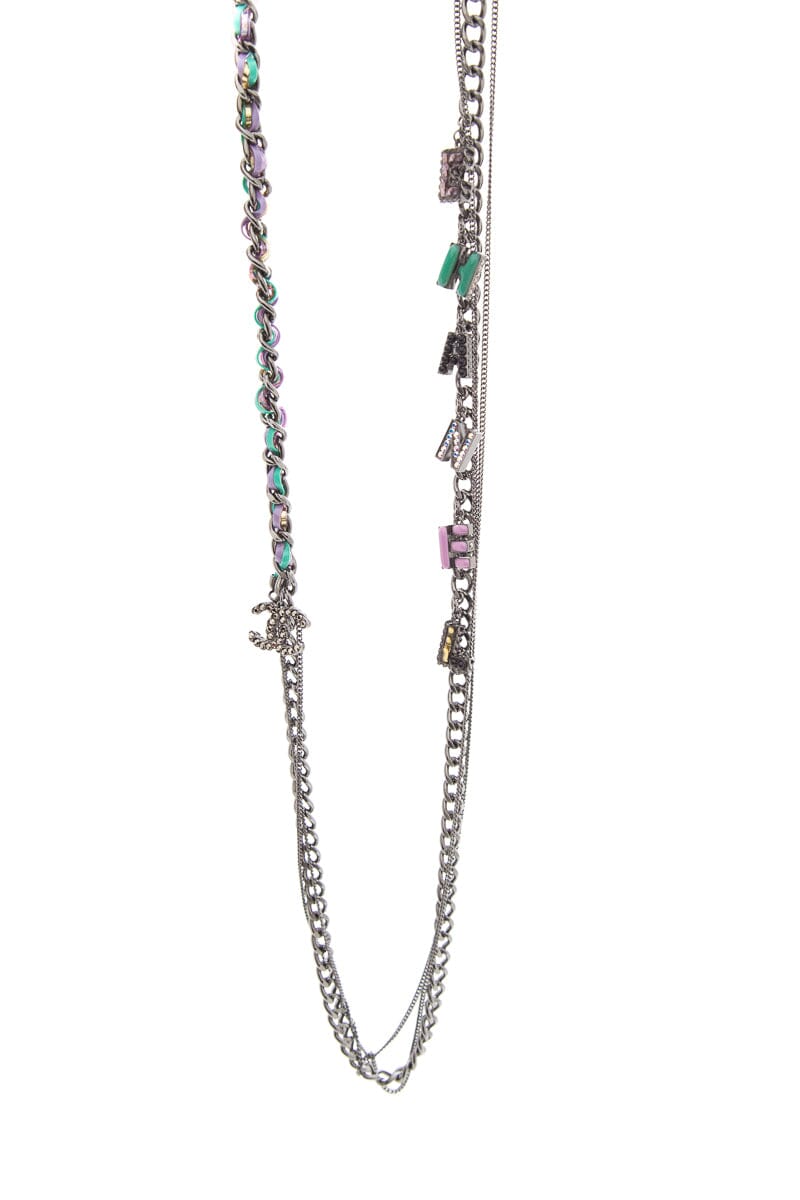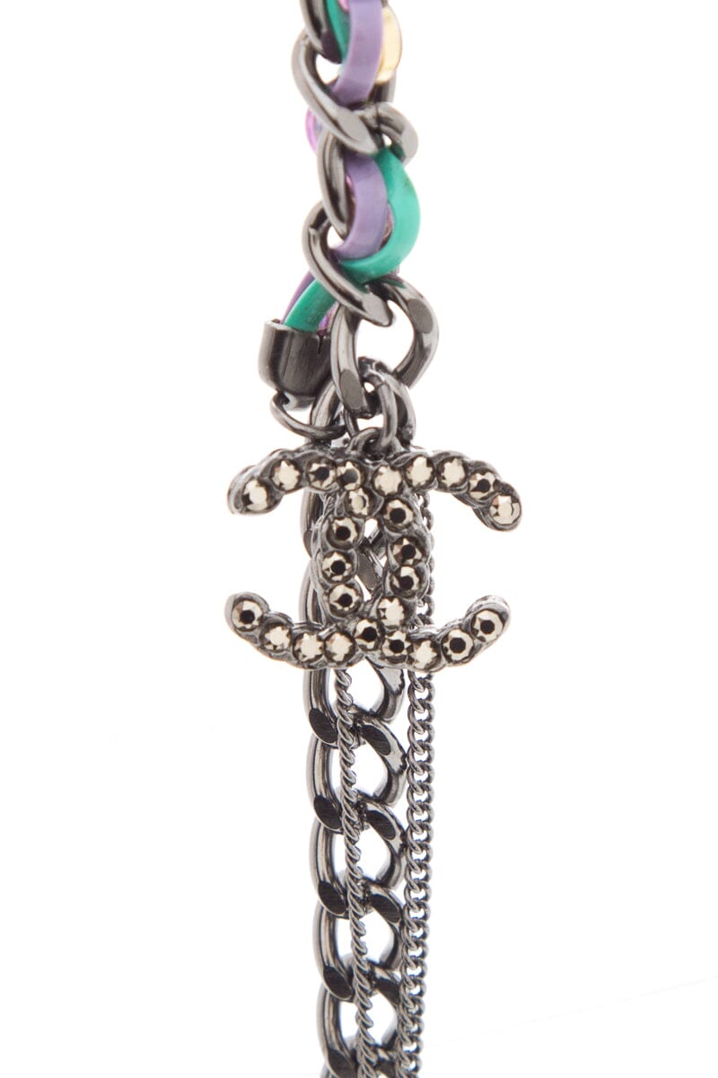 Chanel Purple/Teal Long Chain Necklace with CHANEL Detail. This item is in very good condition.