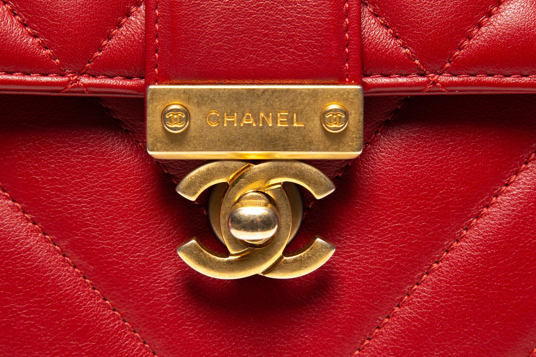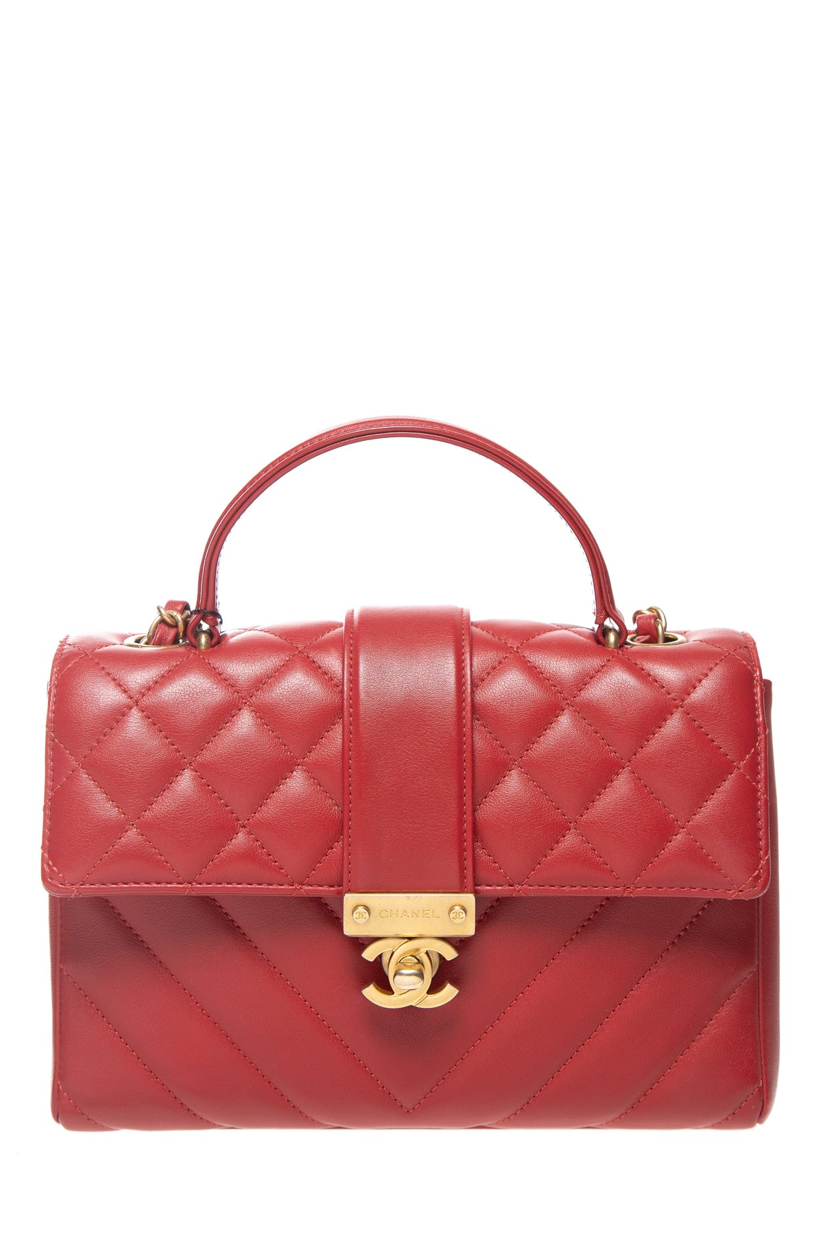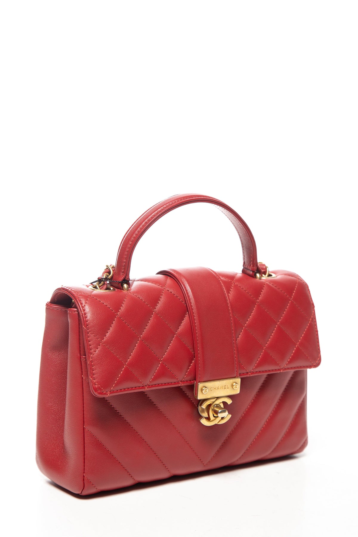 Chanel Red Quilted Leather The City Top Handle Handbag