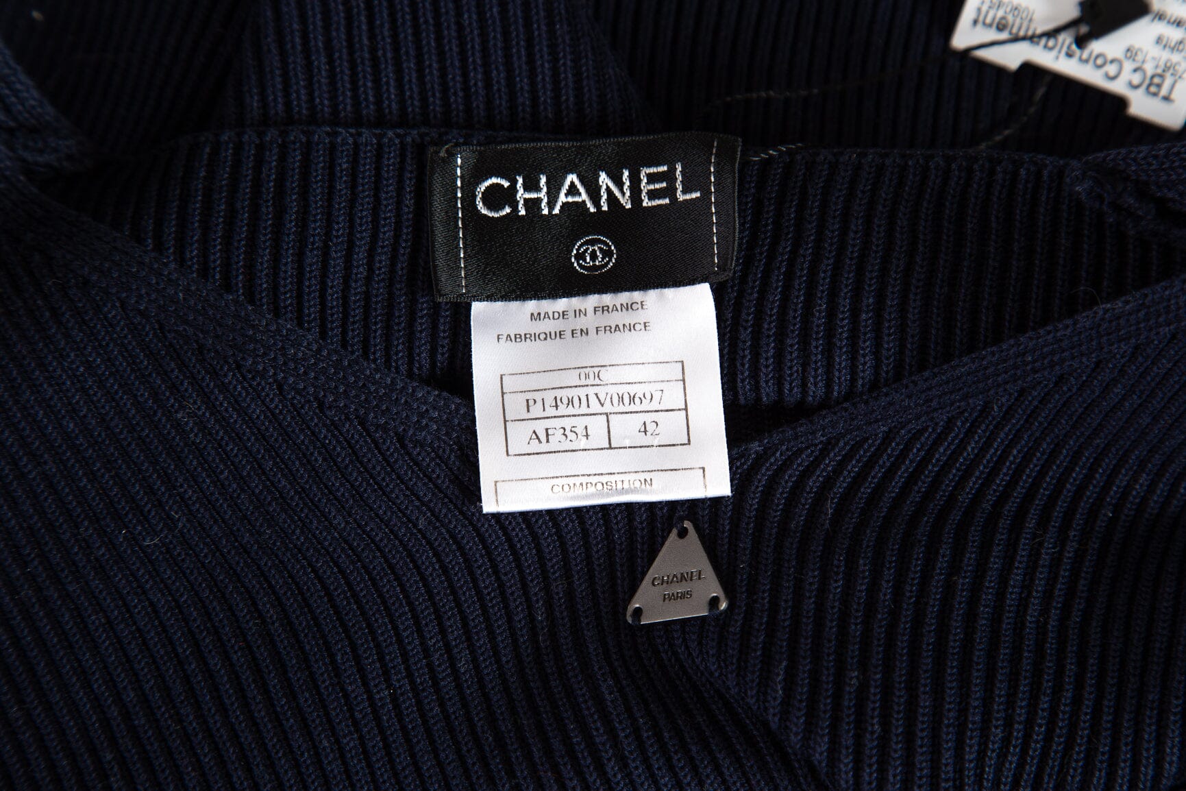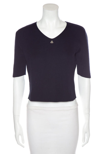 Chanel 2000 Cruise Collection Ribbed Navy Top. This item is vintage and in good condition.
