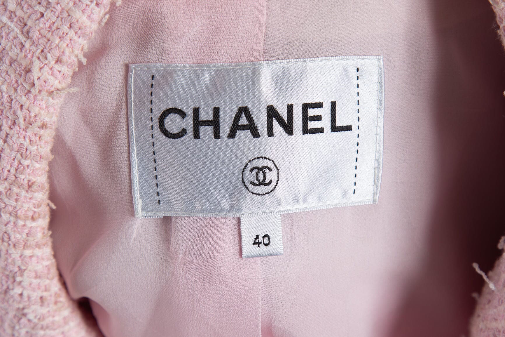 Chanel 2001 Spring Pale Pink Tweed Jacket. This item is vintage and in very good condition.