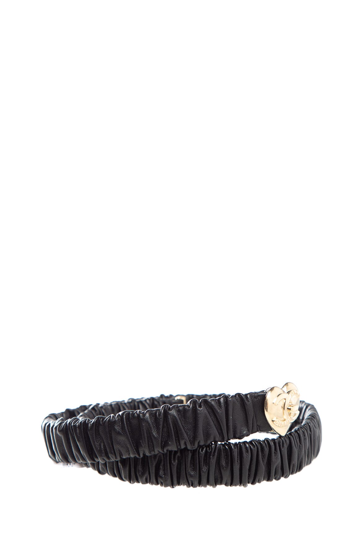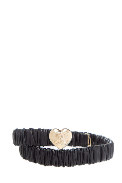 Vintage Chanel Black Leather Heart Belt. This item is in good condition.