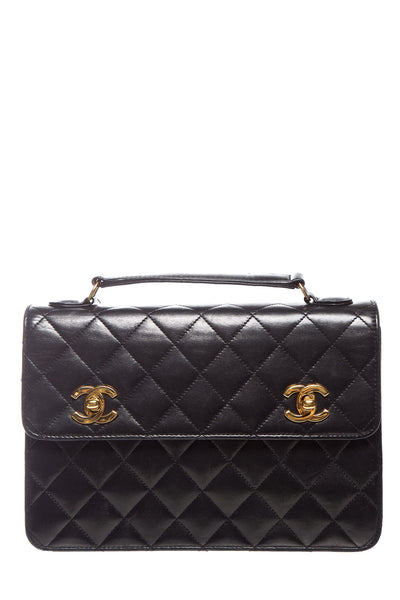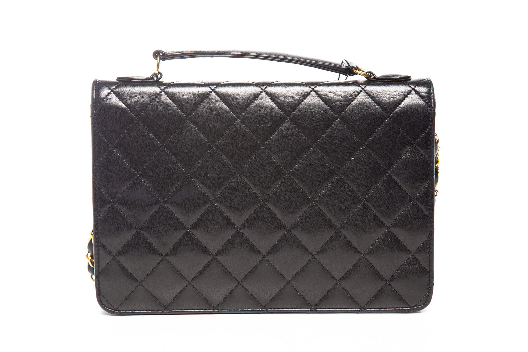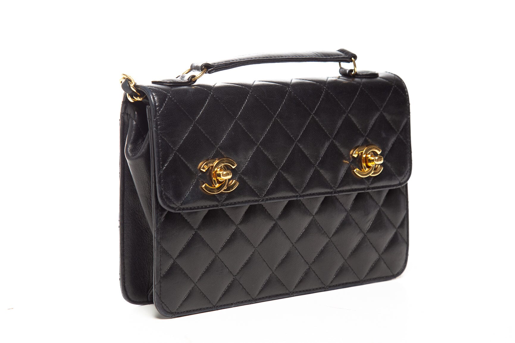 Chanel Black Leather Small Briefcase Bag w/Box. This item is vintage and in very good condition.
