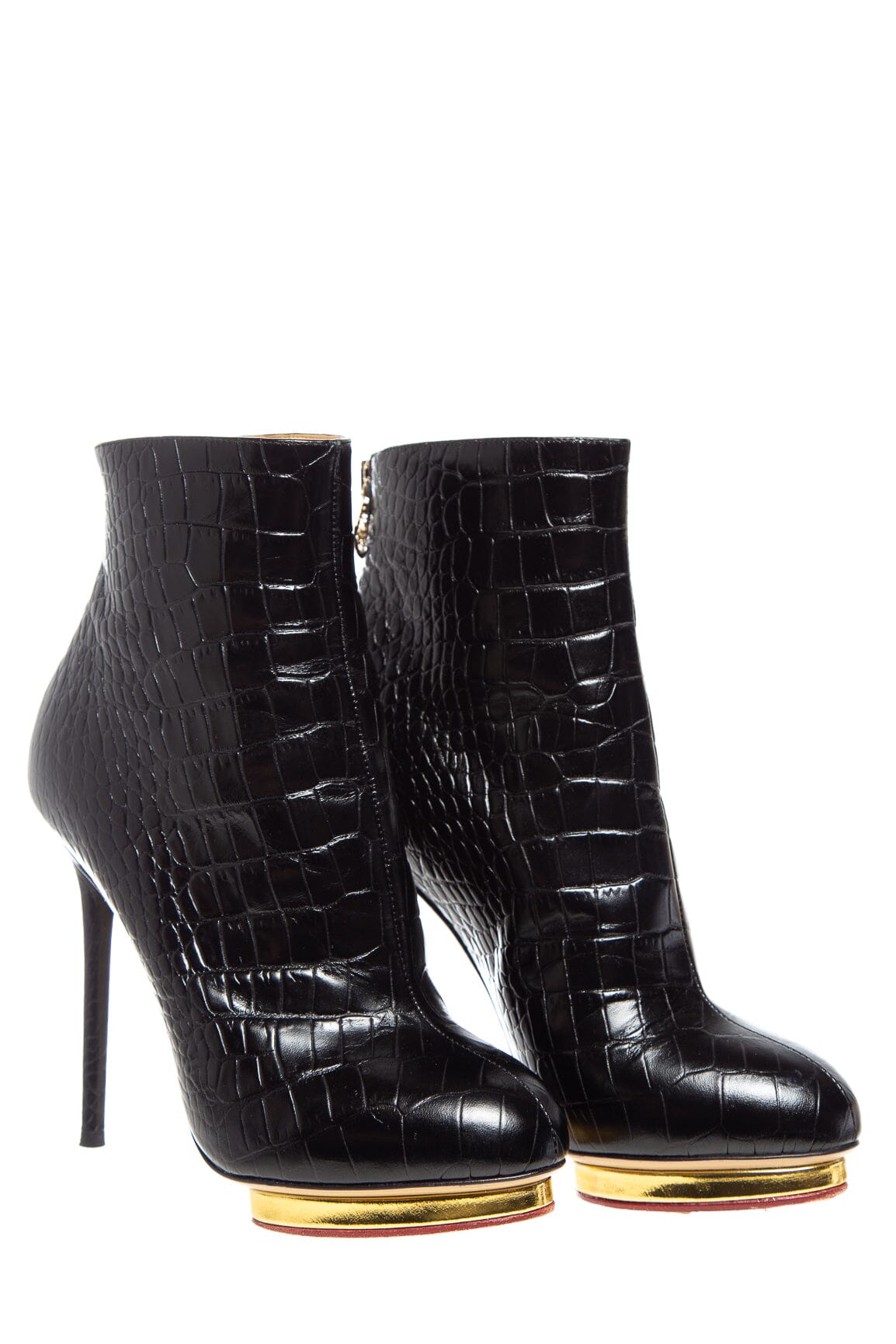 Charlotte Olympia Black Croc Embossed Heel Boots. This item is in very good condition.