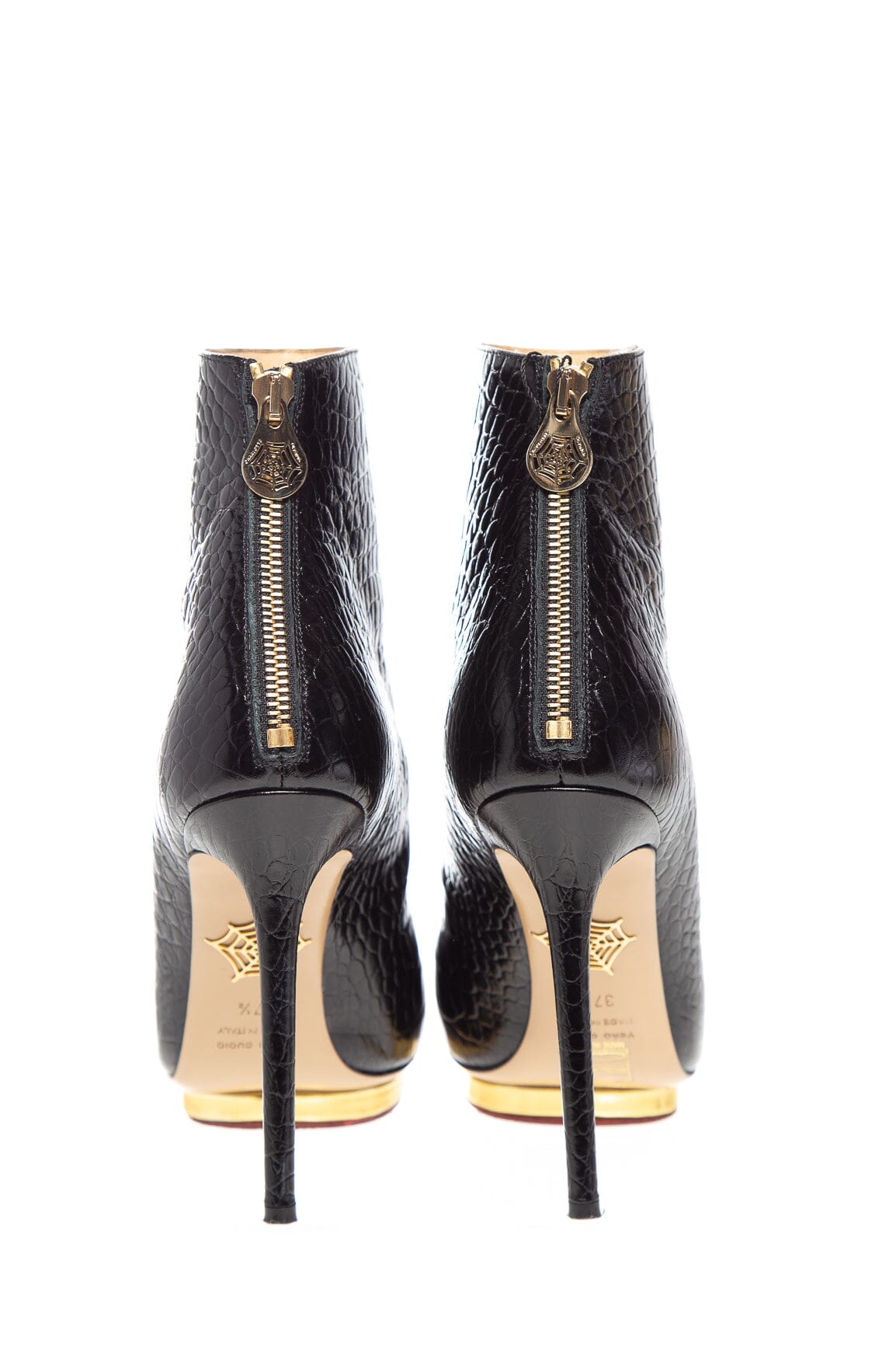 Charlotte Olympia Black Croc Embossed Heel Boots SZ 37.5