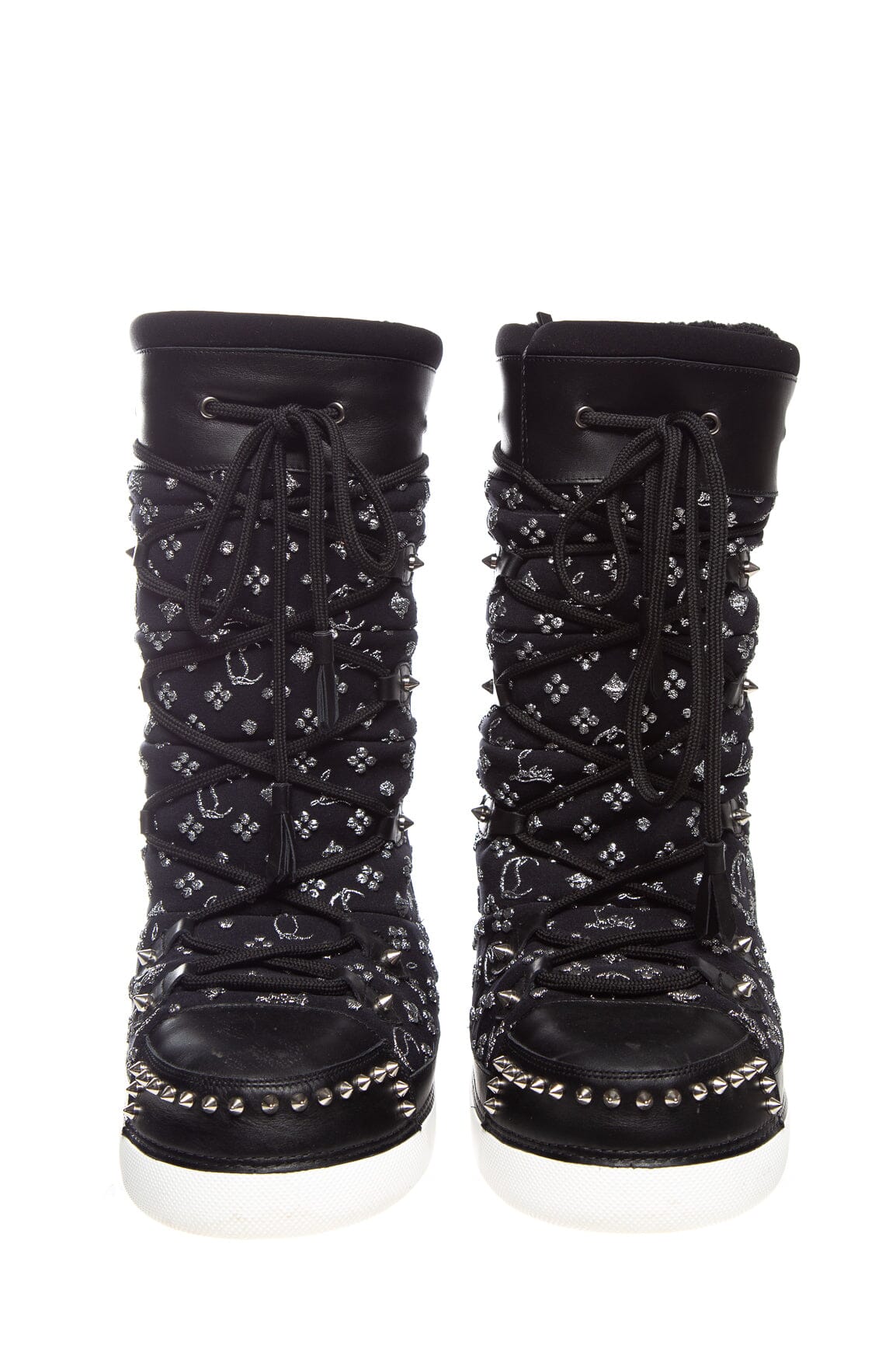 Christian Louboutin Black Aspen Limited Edition Moon Boots w/Silver and Rockstud Detail.