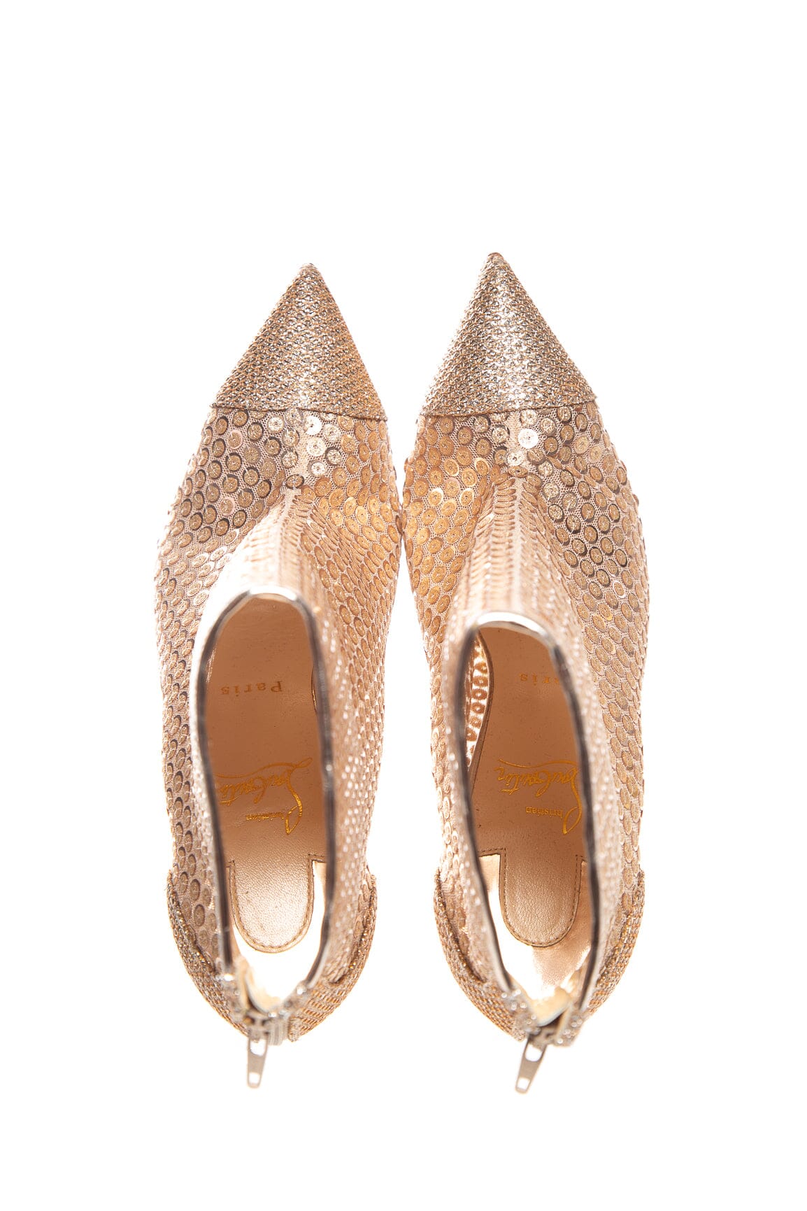 Christian Louboutin Rose Gold Sequin Heel Booties. This item is in very good condition.