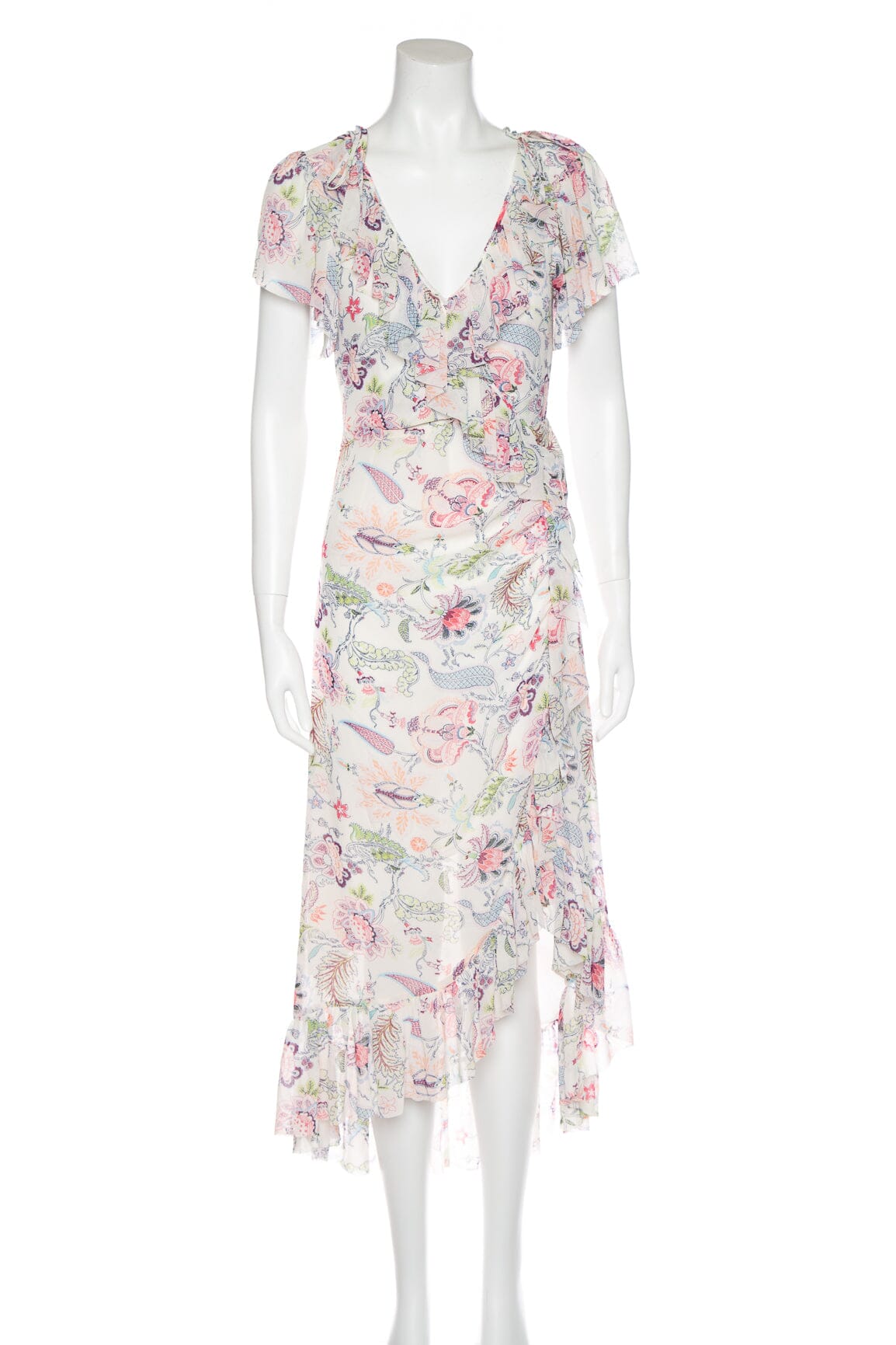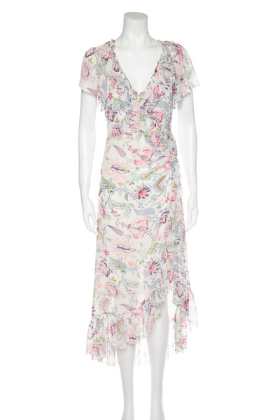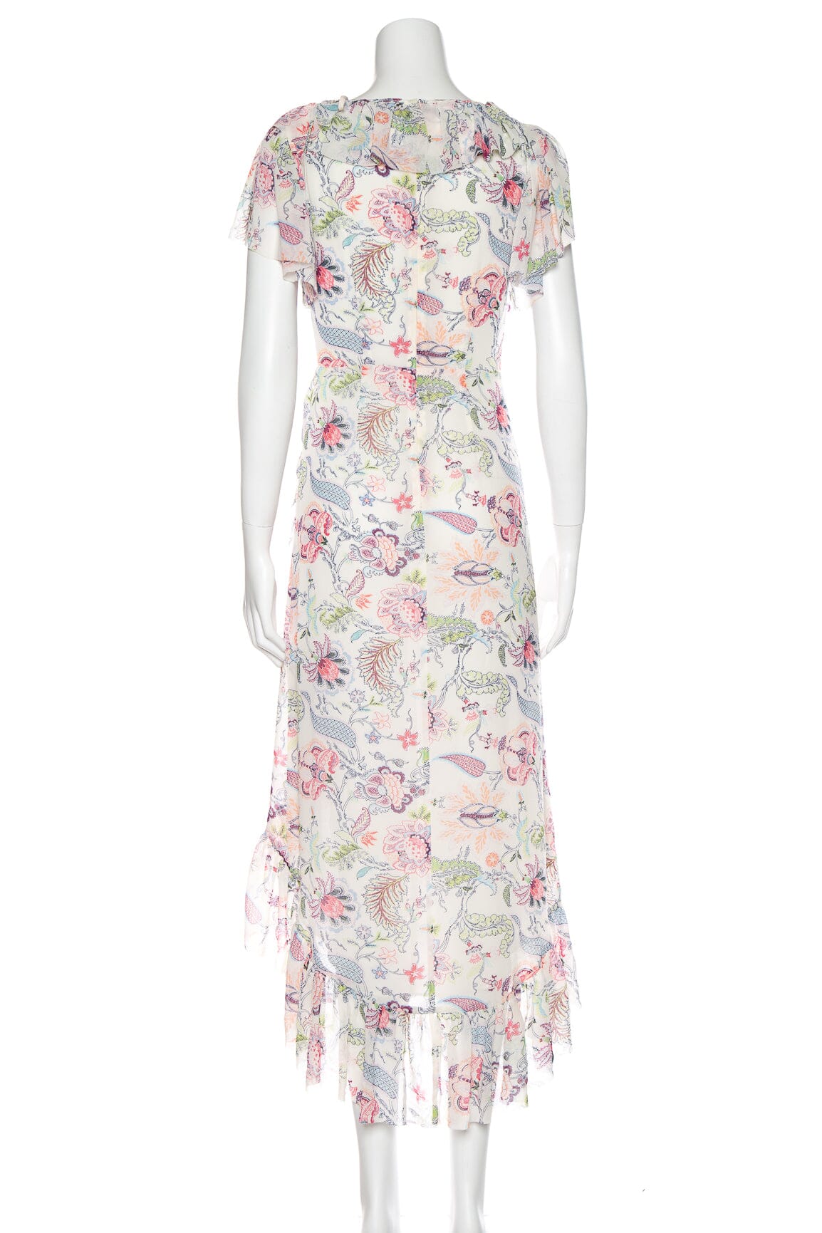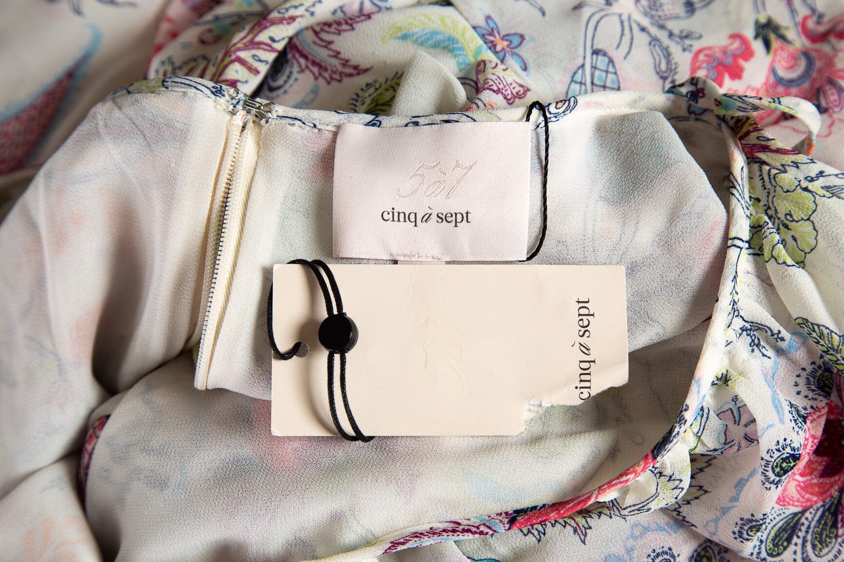 Cinq A Sept Cream & Multicolor Floral "Sheilla" Maxi Dress w/ Ruffle Trim. This item is new with tags.