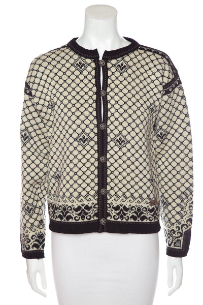 Dale of Norway Cream and Black Printed Wool Cardigan SZ N/A