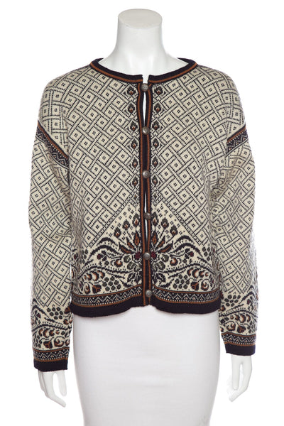 Dale of Norway Cream and Black Printed Wool Cardigan. This item is in very good condition.