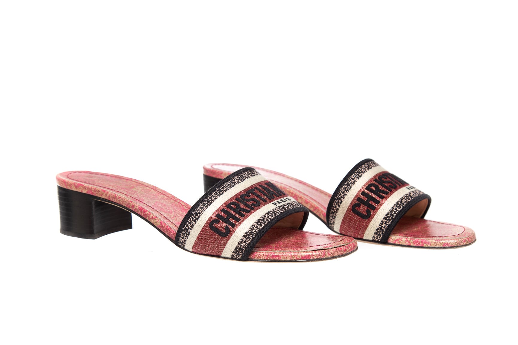 Dior Red Shimmer Printed Embroidered Sandals. This item is in very good condition.