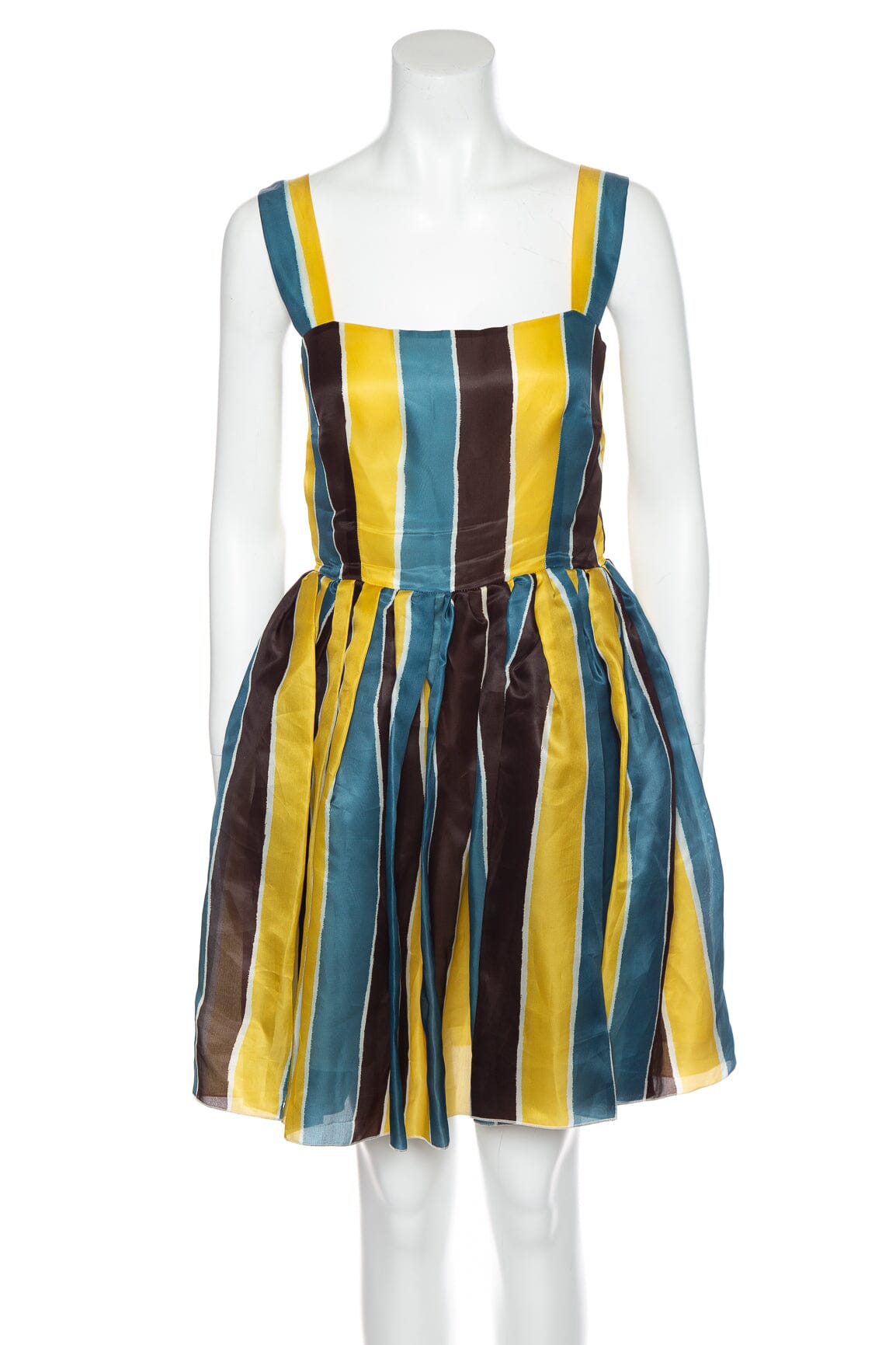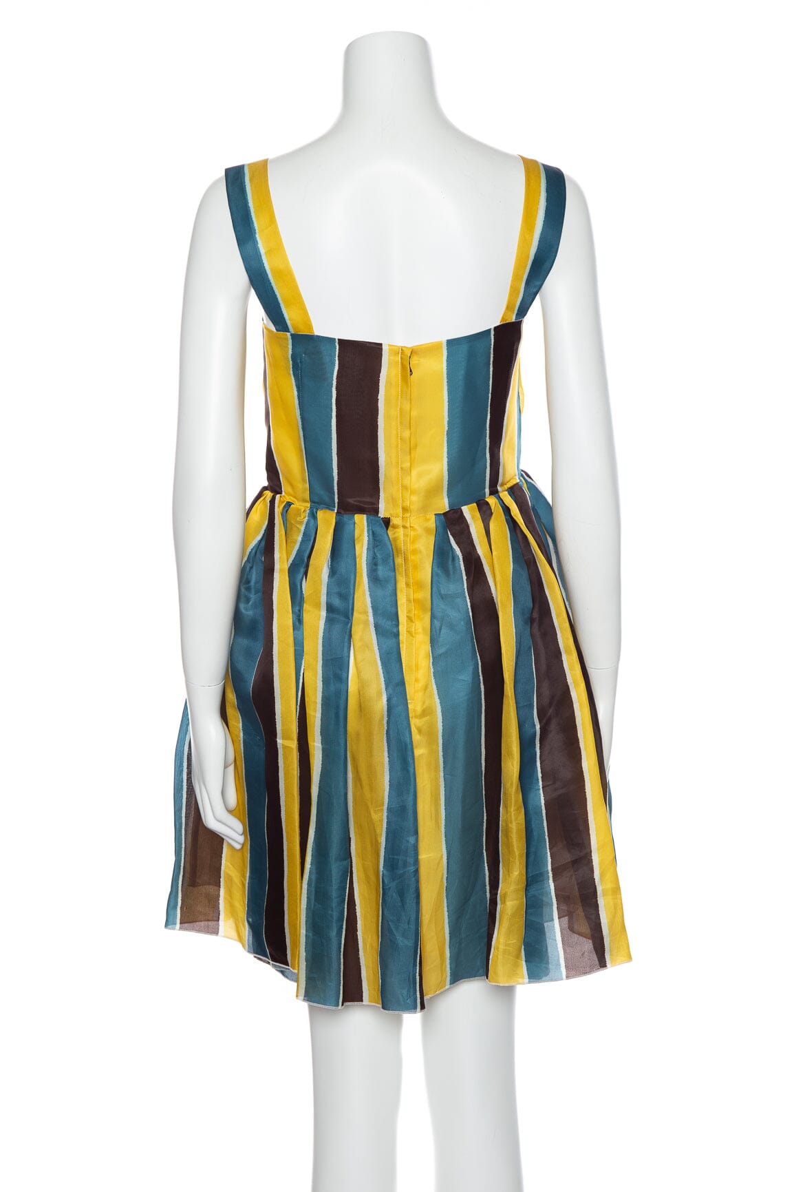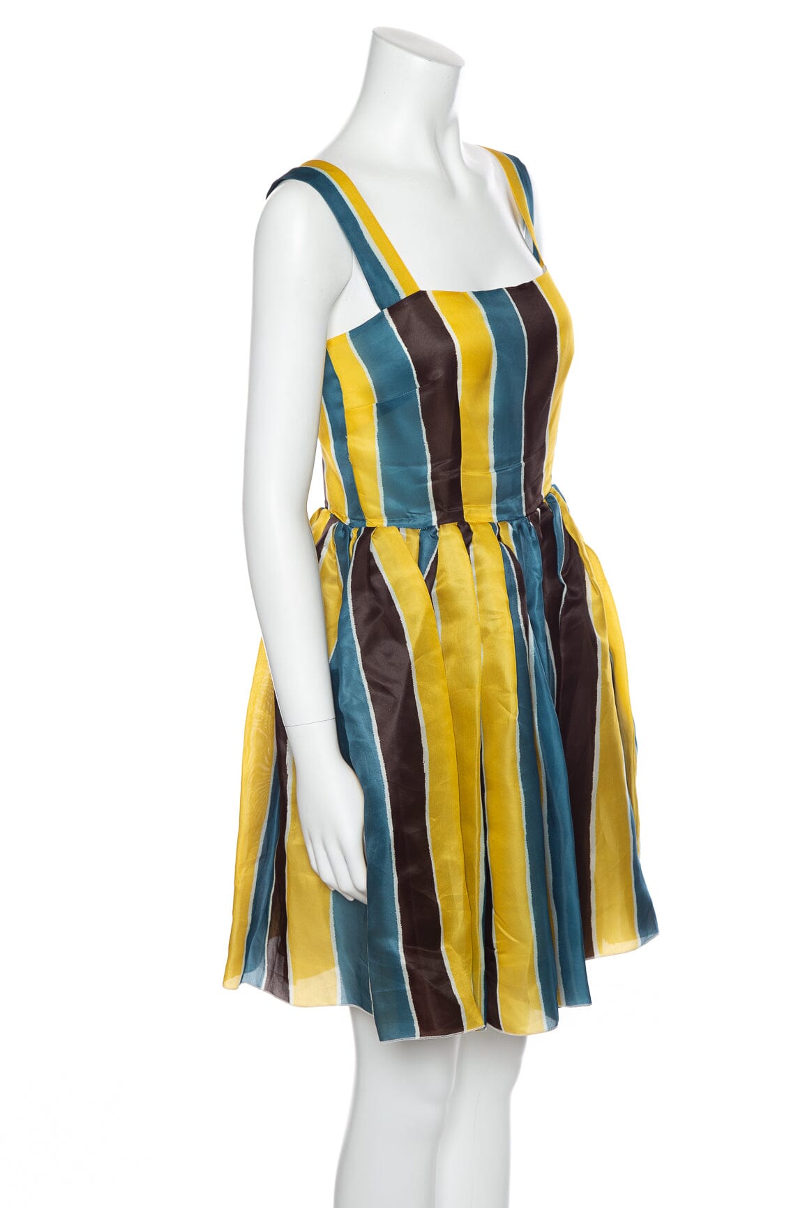 Dolce & Gabbana Blue/Yellow Stripe Silk Sleeveless Dress. This item is in very good condition.