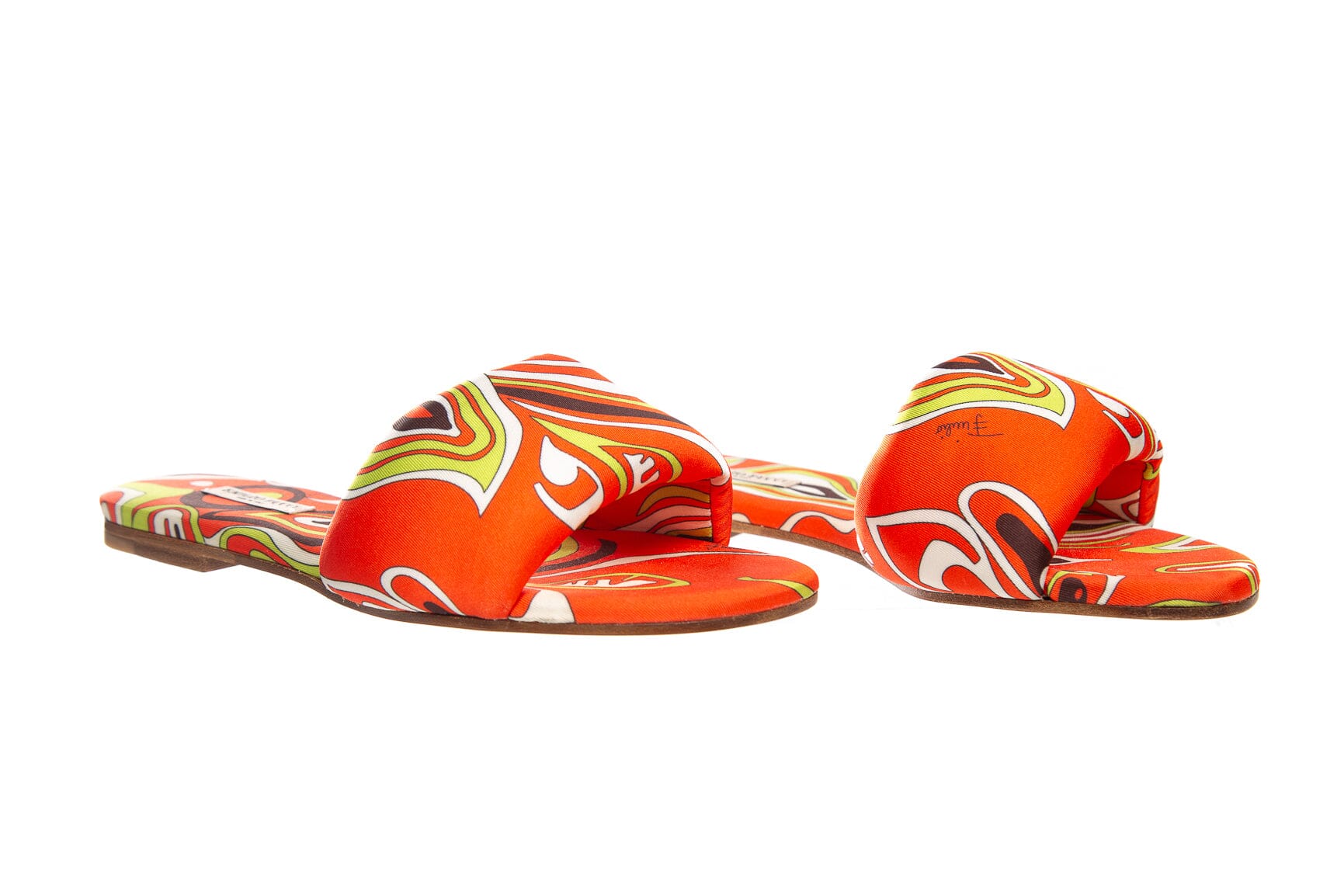 Emilio Pucci Orange Swirl Satin Slides SZ 36