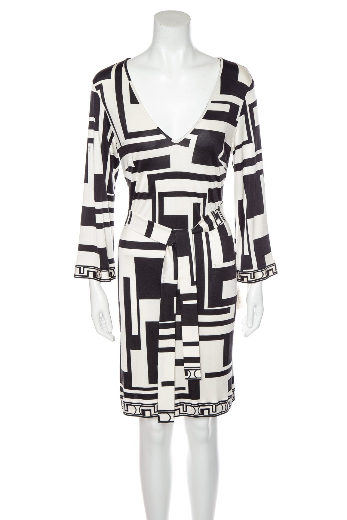 Emilo Pucci Black/White Long Sleeve Dress w/ Waist Tie. This item is in very good condition.