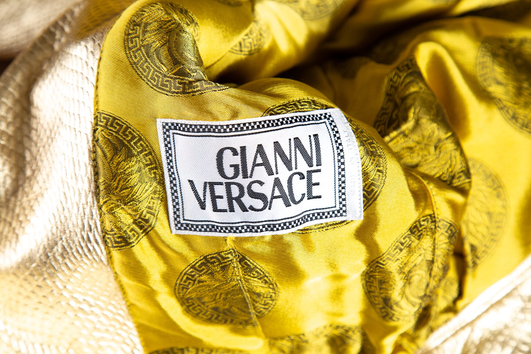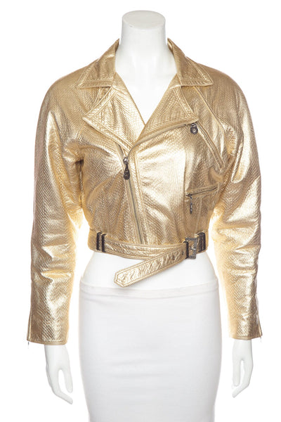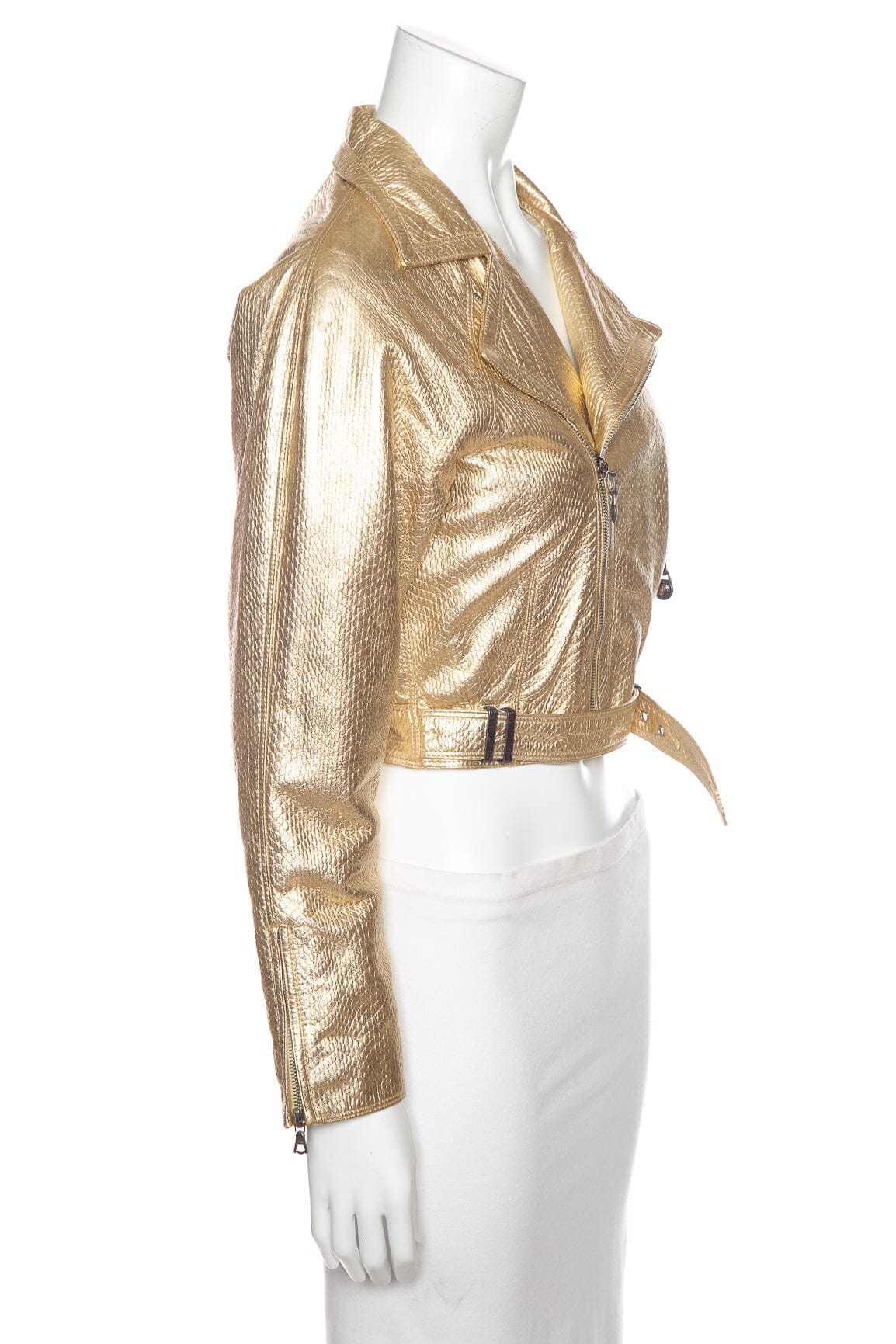 Gianni Versace F/W 1994/95 Gold Embossed Leather Moto Jacket. This item is in very good condition.